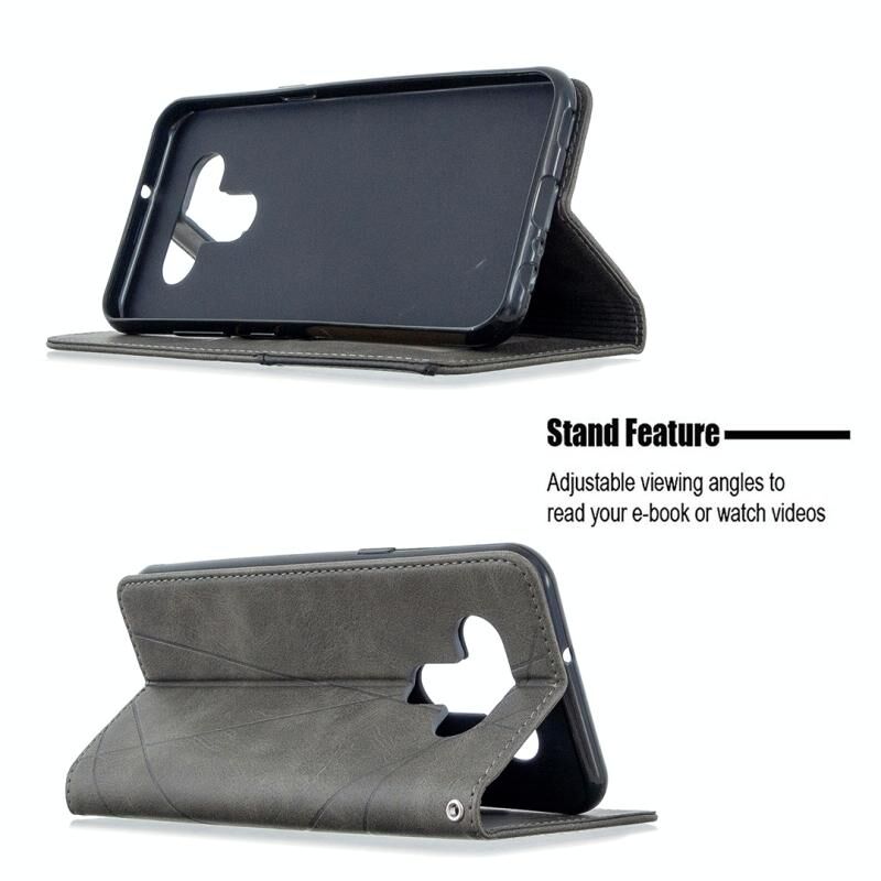 Για LG K51 Rhombus υφή Οριζόντια Flip μαγνητική δερμάτινη θήκη με υποδοχές για κάρτες & πορτοφόλι (γκρι)