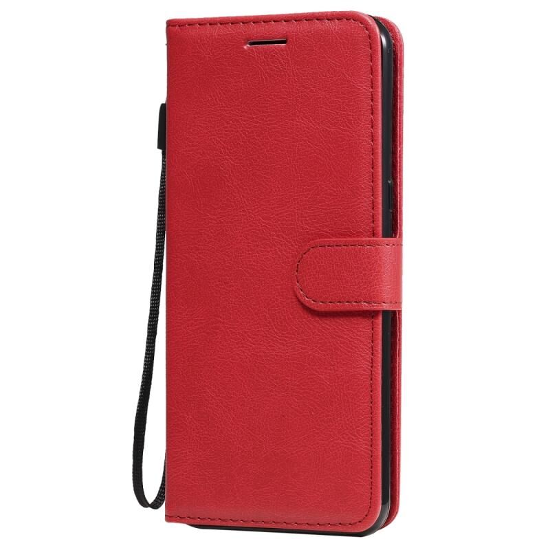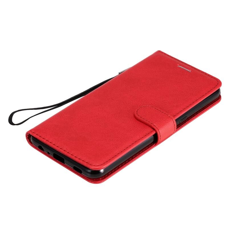 Για LG K51 Αμιγές χρώμα οριζόντια Flip προστατευτική δερμάτινη θήκη με θήκη & υποδοχές για κάρτες & πορτοφόλι & κορνίζα & κορδόνι (κόκκινο)