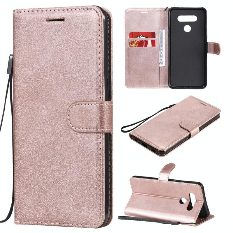 Για LG K51 Αμιγές χρώμα οριζόντια Flip προστατευτική δερμάτινη θήκη με θήκη & υποδοχές για κάρτες & πορτοφόλι & πλαίσιο φωτογραφιών & κορδόνι (Rose Gold)