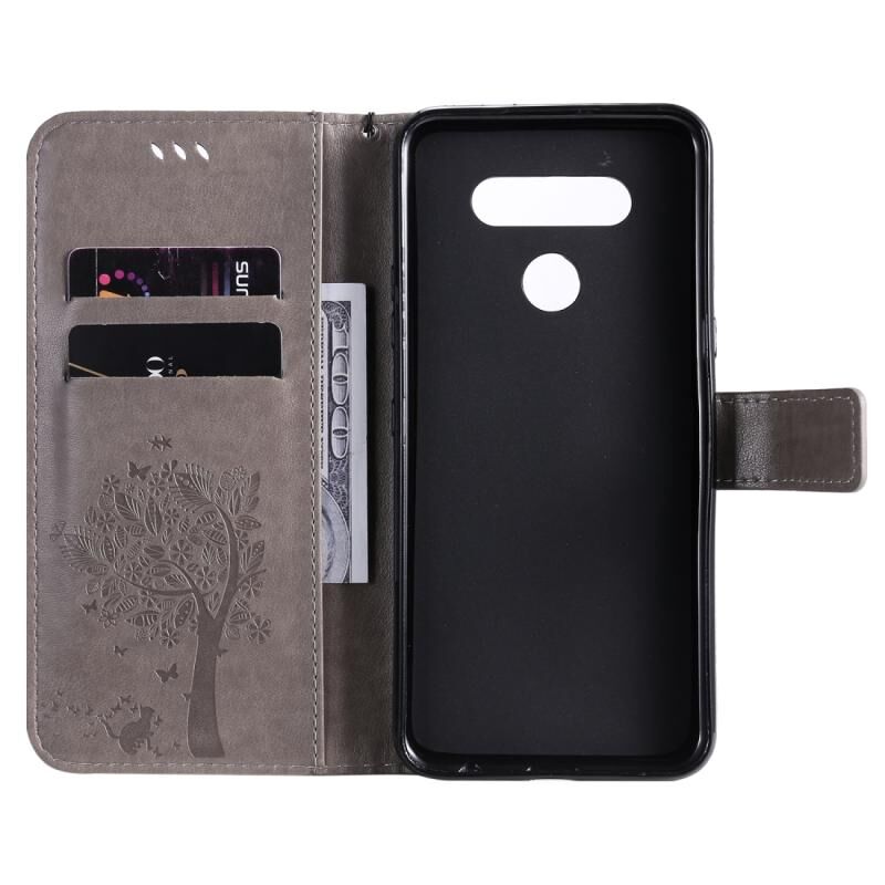 Θήκη για LG K51 με ανάγλυφο σχέδιο Δέντρου & Γάτας, οριζόντια, από δέρμα με βάση στήριξης, θήκες για κάρτες, πορτοφόλι & λουρί (Κόκκινη)