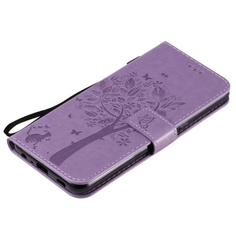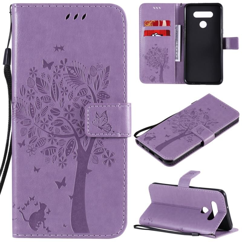 Θήκη για LG K51 με ανάγλυφο σχέδιο Δέντρου & Γάτας, οριζόντια, από δέρμα με βάση στήριξης, θήκες για κάρτες, πορτοφόλι & λουρί (Πράσινο)
