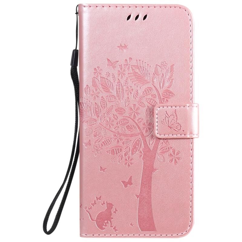 Θήκη για LG K51 με ανάγλυφο σχέδιο Δέντρου & Γάτας, οριζόντια, από δέρμα με βάση στήριξης, θήκες για κάρτες, πορτοφόλι & λουρί (Πράσινο)