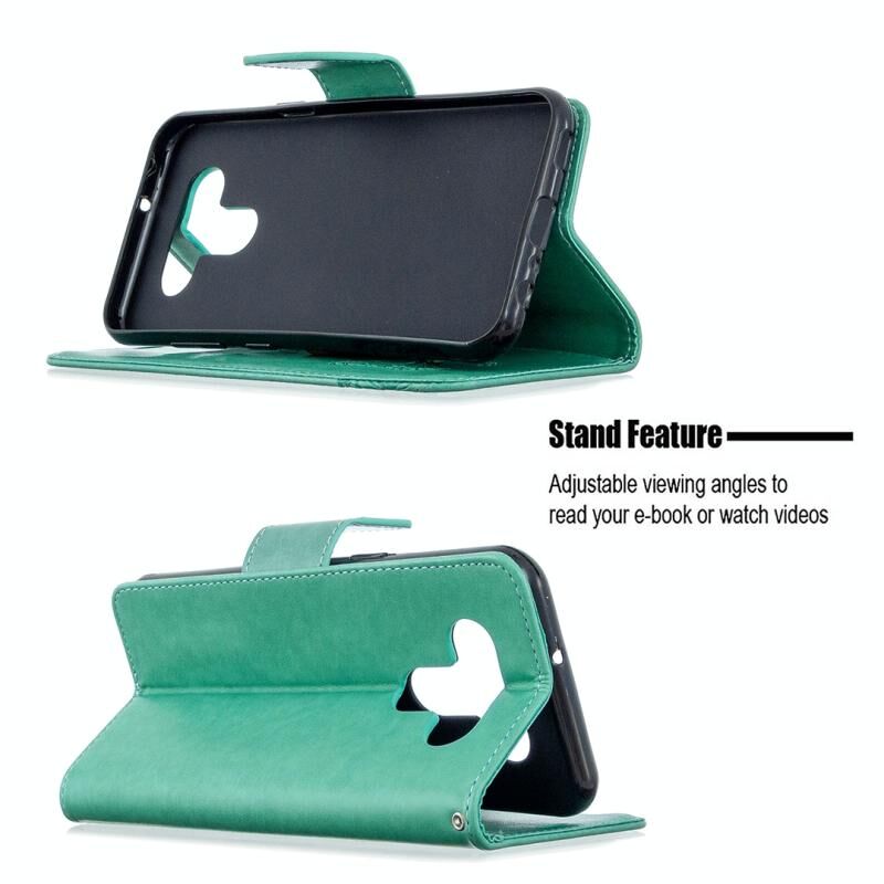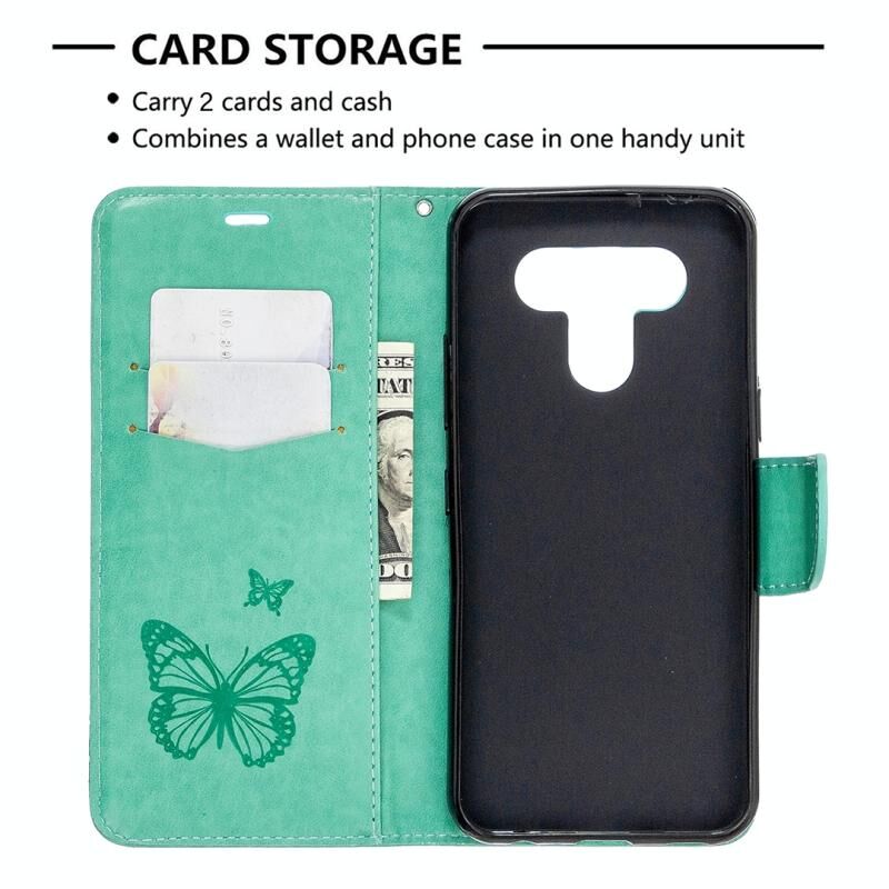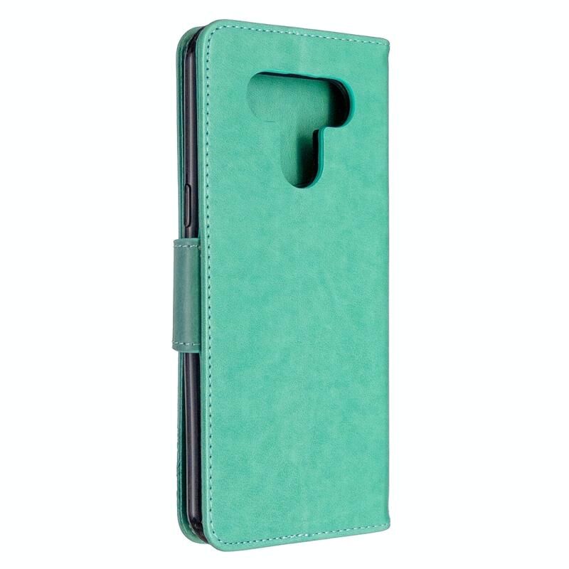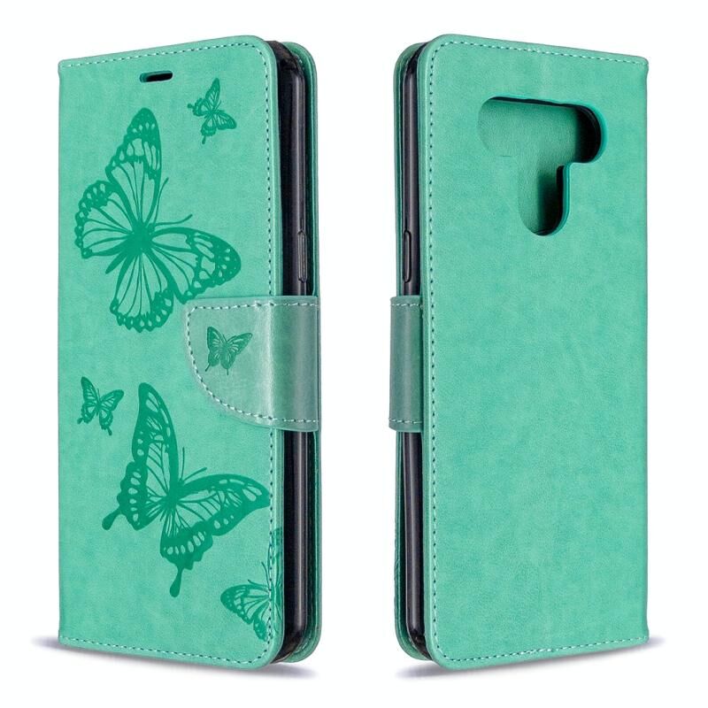 Για LG K51 Δύο πεταλούδες ανάγλυφο μοτίβο οριζόντια Flip δερμάτινη θήκη με κάτοχο & υποδοχή για κάρτες & πορτοφόλι & κορδόνι (πράσινο)