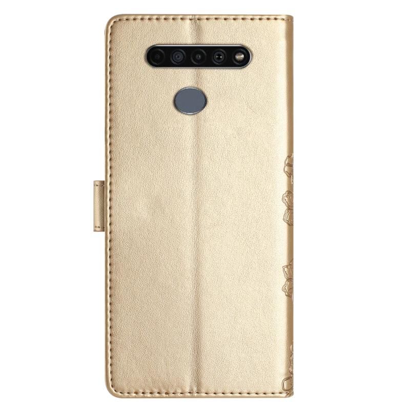 Θήκη τηλεφώνου LG K51S Cherry Blossom Butterfly με ανάγλυφη υφή PU (Μωβ)