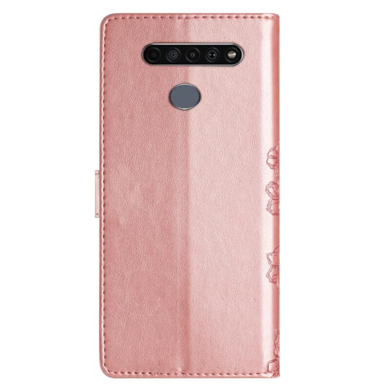 Θήκη τηλεφώνου LG K51S Cherry Blossom Butterfly με ανάγλυφη υφή PU (Μωβ)