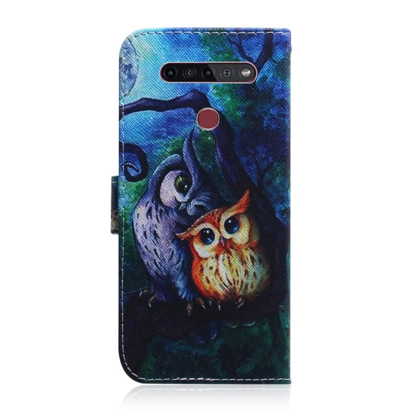 Θήκη δέρματος οριζόντιας αναδίπλωσης με σχέδιο για LG K51S (κουκουβάγια ζωγραφικής λαδιού), με βάση, θήκες για κάρτες και πορτοφόλι.