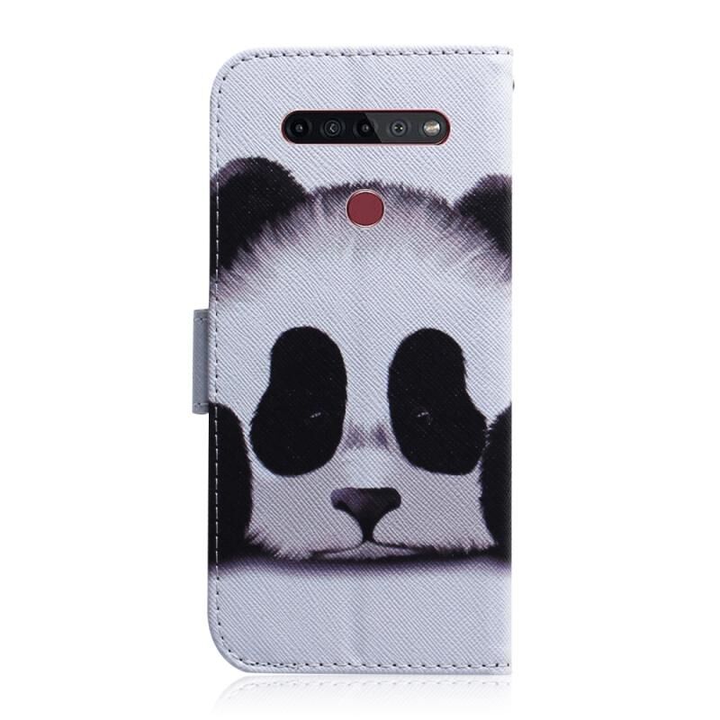 Θήκη δέρματος οριζόντιας αναδίπλωσης με σχέδιο για LG K51S (Panda), με βάση & θήκες καρτών & πορτοφόλι.