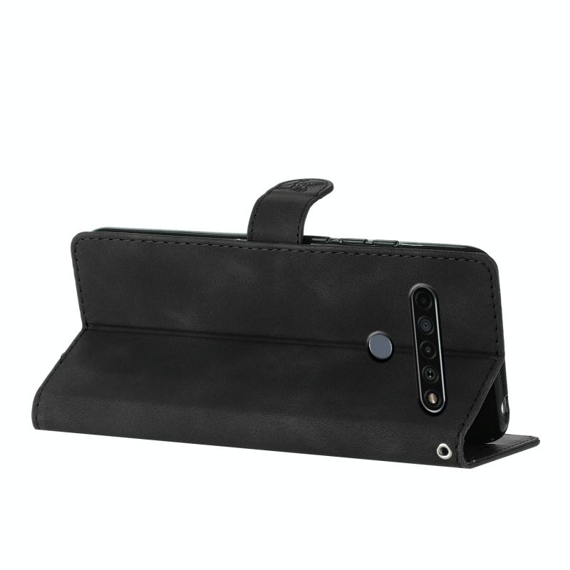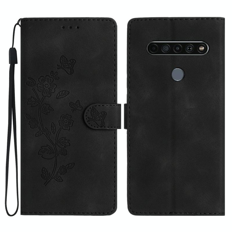Θήκη τηλεφώνου δερμάτινη με ανάγλυφο σχέδιο λουλουδιών και πεταλούδων για LG K51S (Μαύρο)