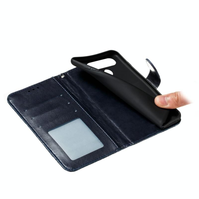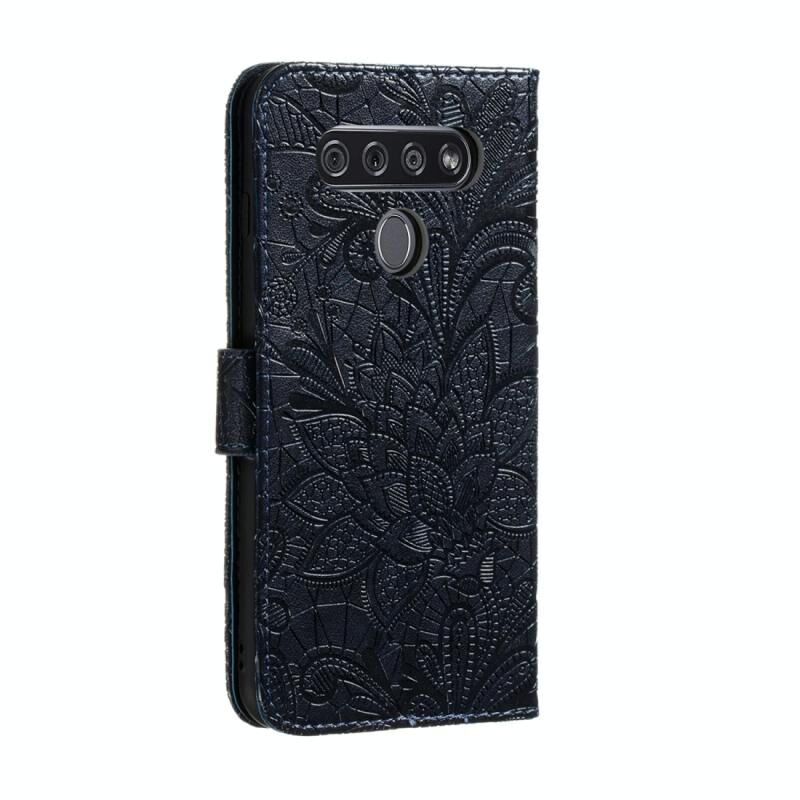 Για το LG K51S Lace Flower Οριζόντια Flip δερμάτινη θήκη με θήκη & υποδοχές για κάρτες & πορτοφόλι & κορνίζα φωτογραφιών (σκούρο μπλε)