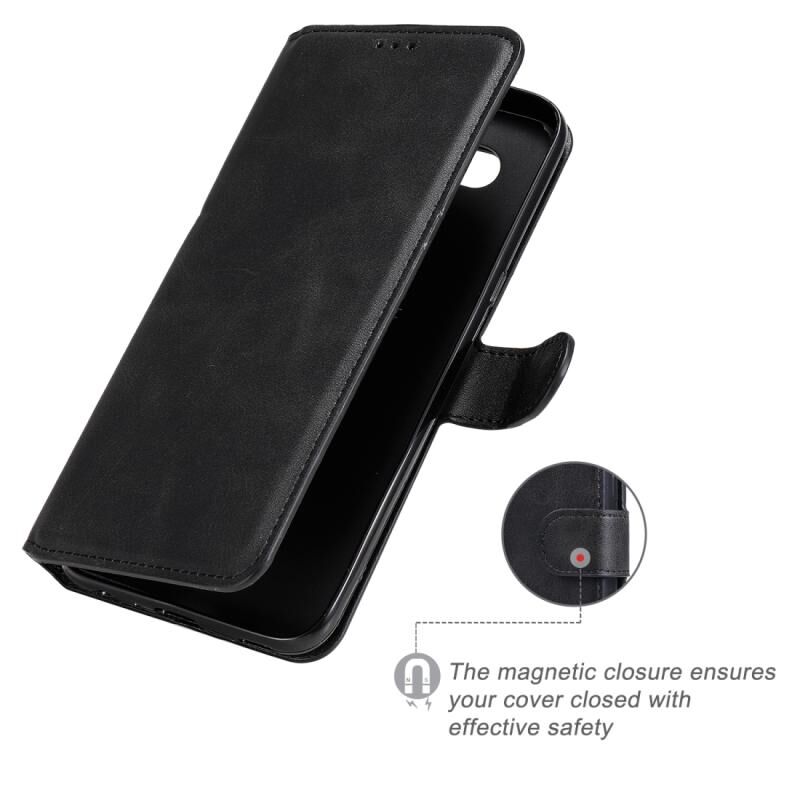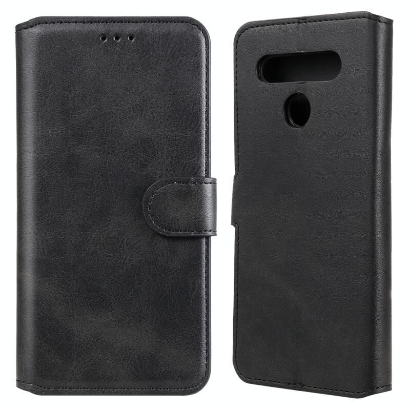 Για το LG K51S / Q51S Κλασική θήκη από δέρμα με υφή μοσχαριού PU + TPU Οριζόντια Flip, με θήκη για κάρτες και υποδοχές και πορτοφόλι (Μαύρο)
