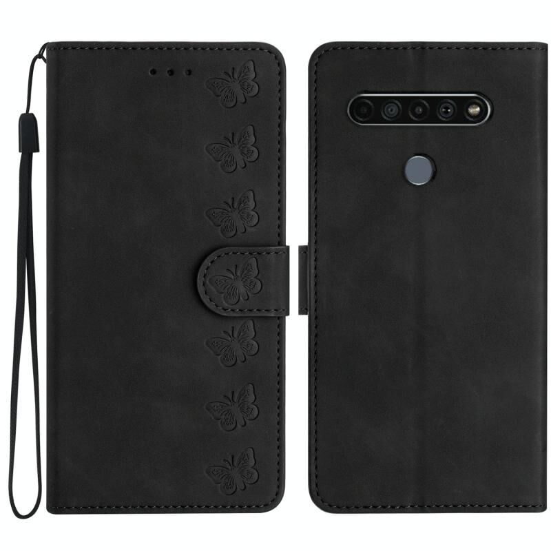 Για LG K51S Επτά πεταλούδες ανάγλυφη δερμάτινη θήκη τηλεφώνου (μαύρο)