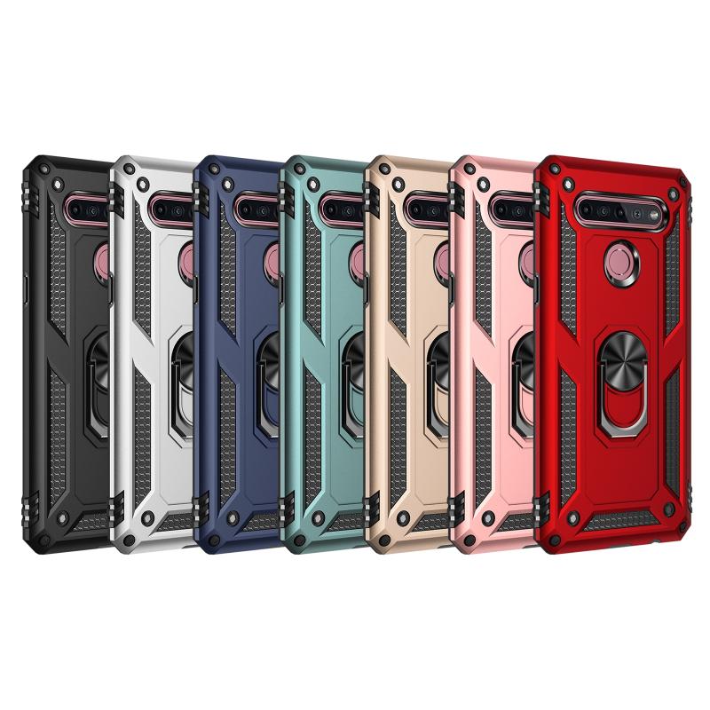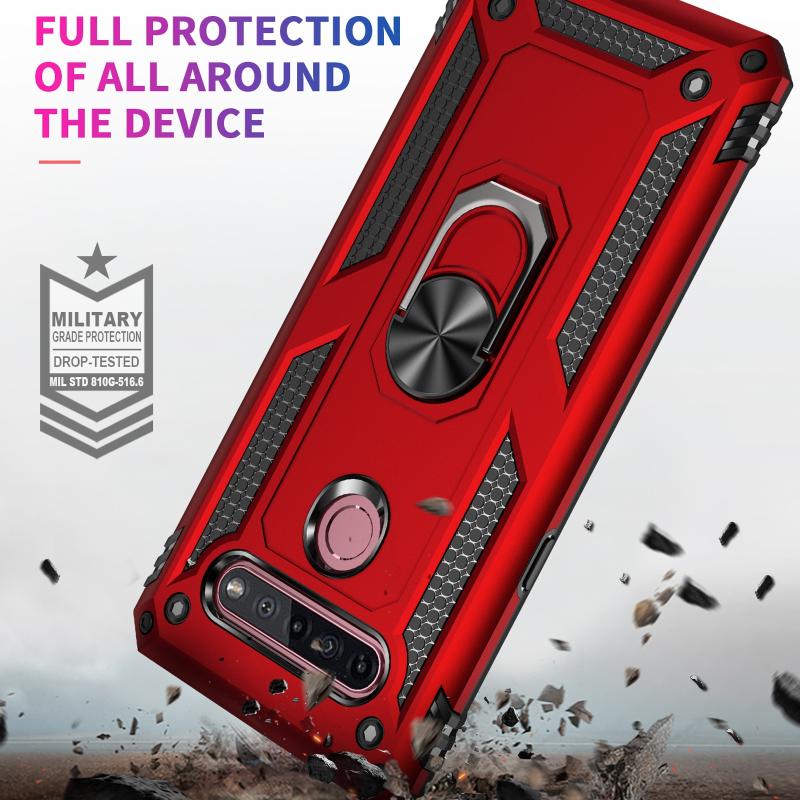Θήκη προστασίας για LG K51S από TPU + PC ανθεκτική στις κρούσεις με περιστρεφόμενη βάση 360 μοιρών (Ασημί)