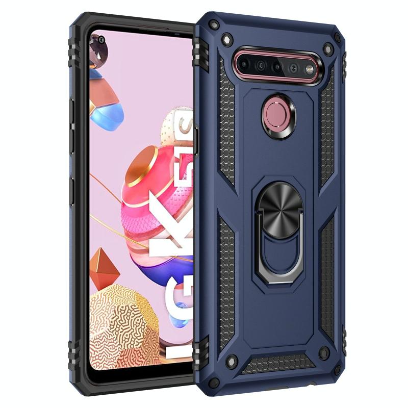 Θήκη προστασίας για LG K51S από TPU + PC ανθεκτική στις κρούσεις με περιστρεφόμενη βάση 360 μοιρών (Ασημί)