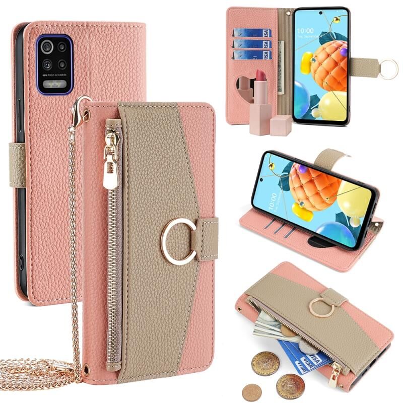 Για LG K52 Crossbody Litchi Υφή δέρμα υπόθεση τηλεφώνου (ροζ)