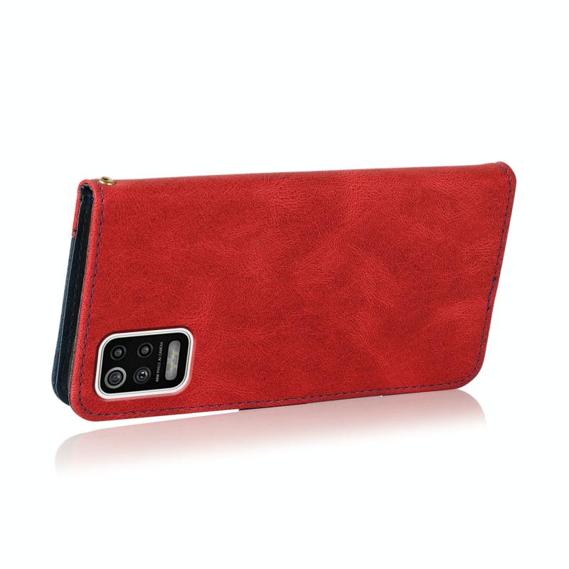 Θήκη τηλεφώνου από δέρμα με διπλή ραφή για LG K52 (Καφέ Κόκκινο)