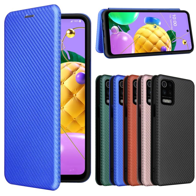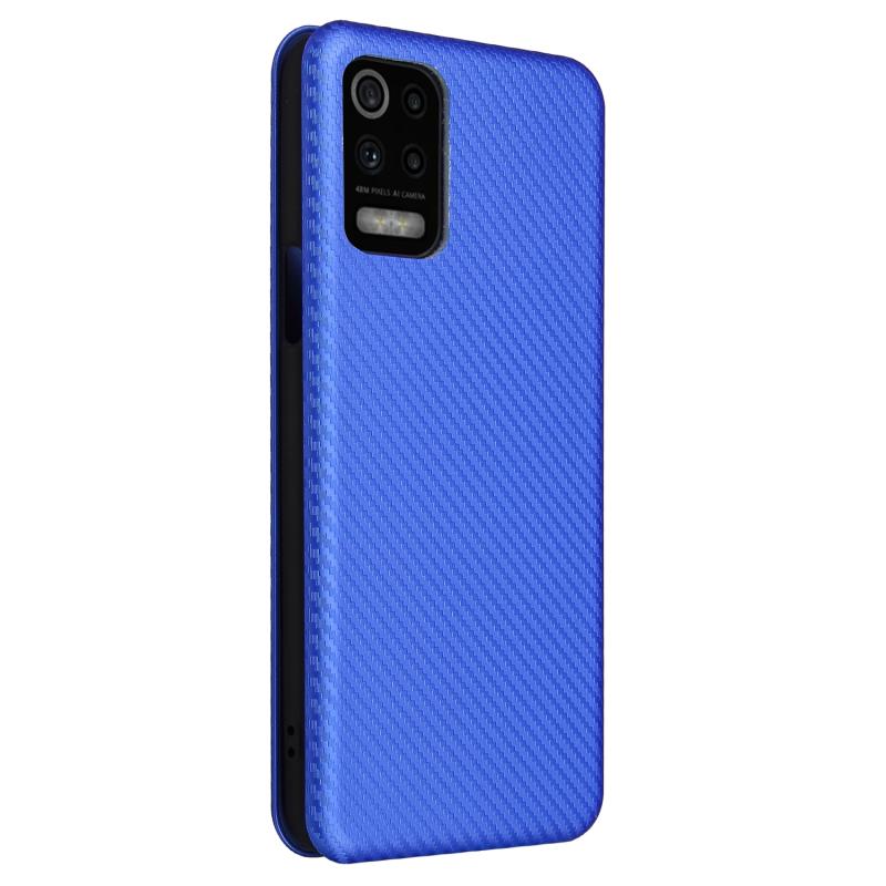 For LG K52 / K62 Carbon Fiber Texture Horizontal Flip TPU + PC + PU Leather Case with Card Slot(Blue)