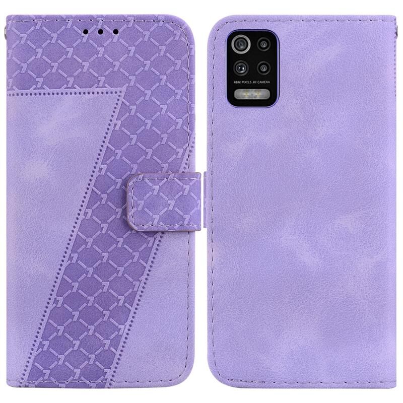 Για LG K52/K62/Q52 7-σχήμα ανάγλυφο δέρμα τηλέφωνο υπόθεση (μωβ)