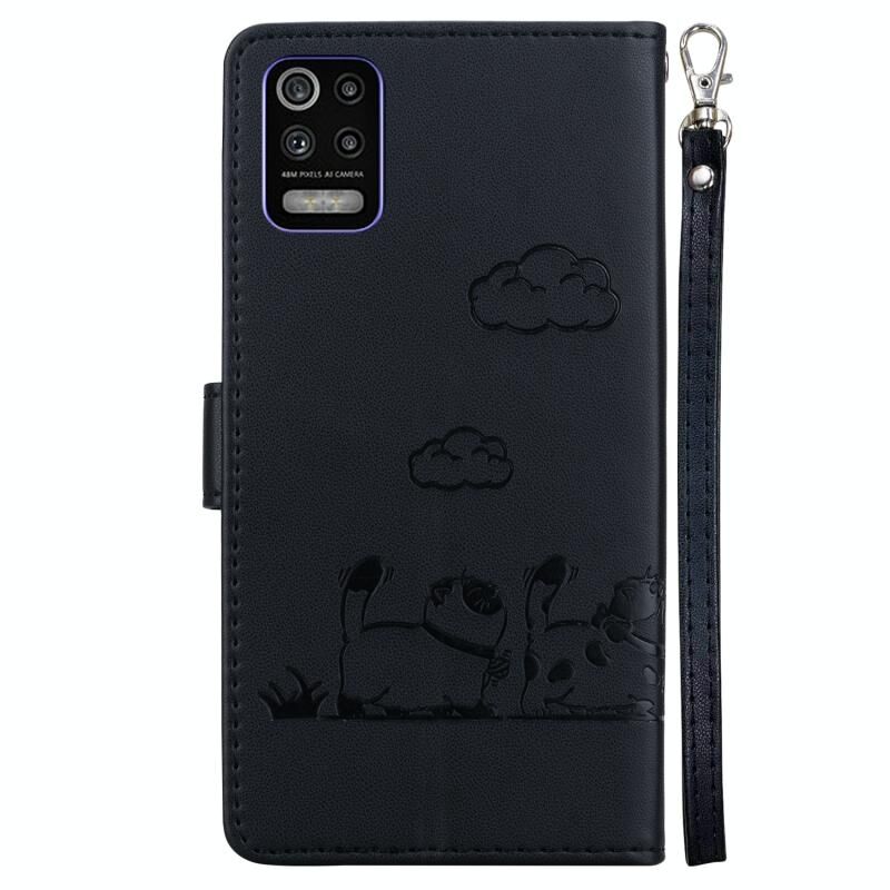 Θήκη τηλεφώνου από δέρμα με χαριτωμένες γάτες για LG K52 / K62 / Q52 (Μωβ)