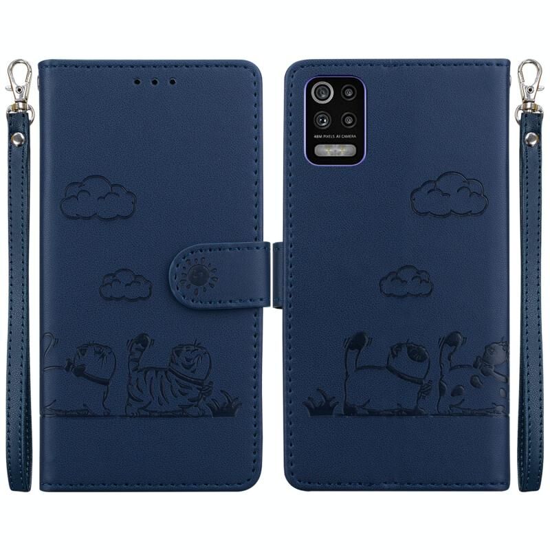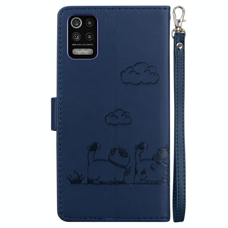 Θήκη τηλεφώνου από δέρμα με χαριτωμένες γάτες για LG K52 / K62 / Q52 (Μωβ)