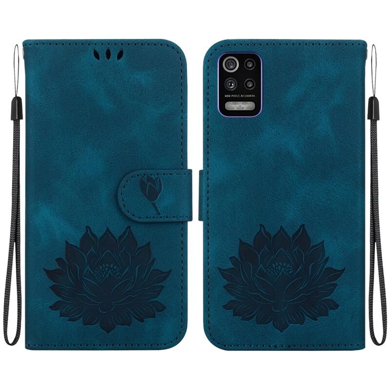 Για LG K52 / K62 / Q52 Lotus ανάγλυφη δερμάτινη θήκη τηλεφώνου (σκούρο μπλε)