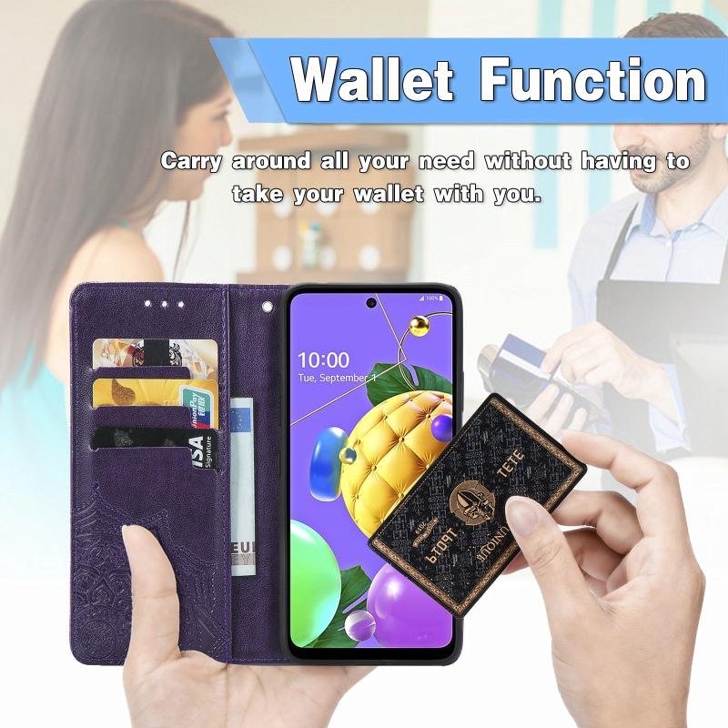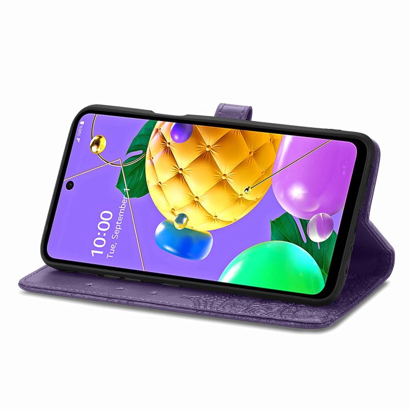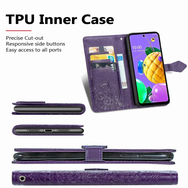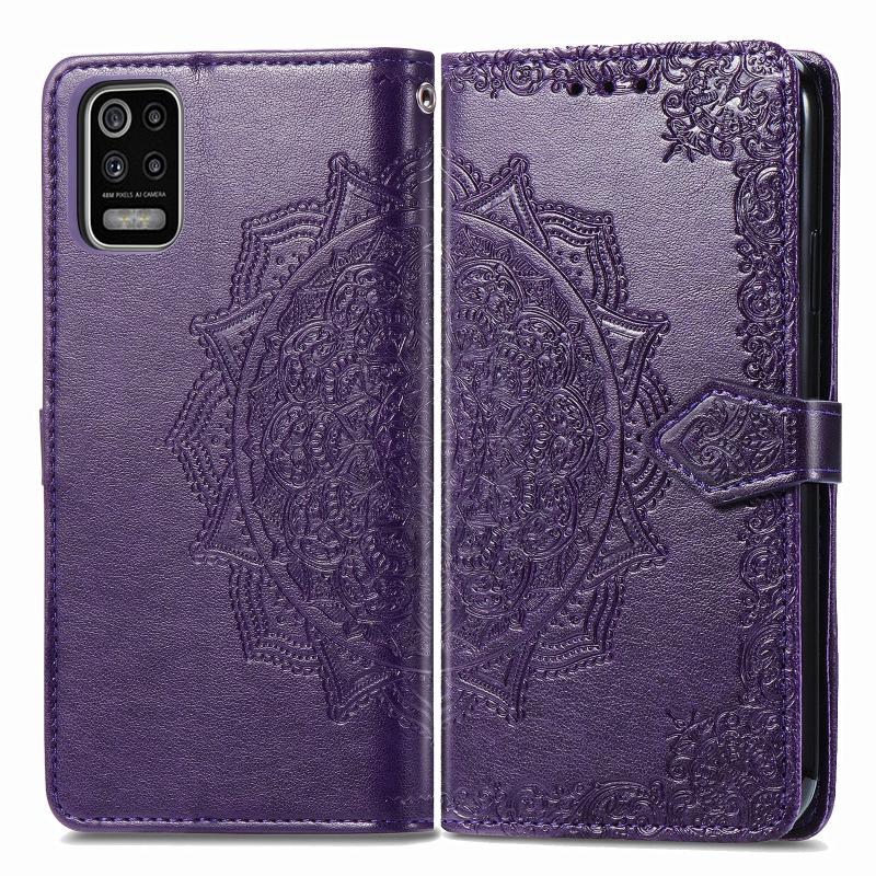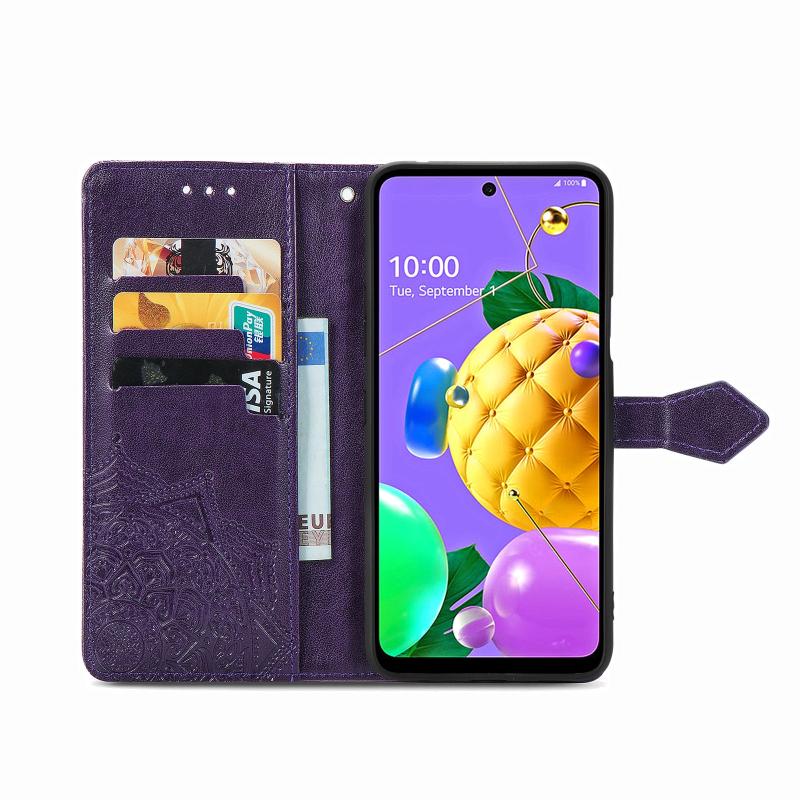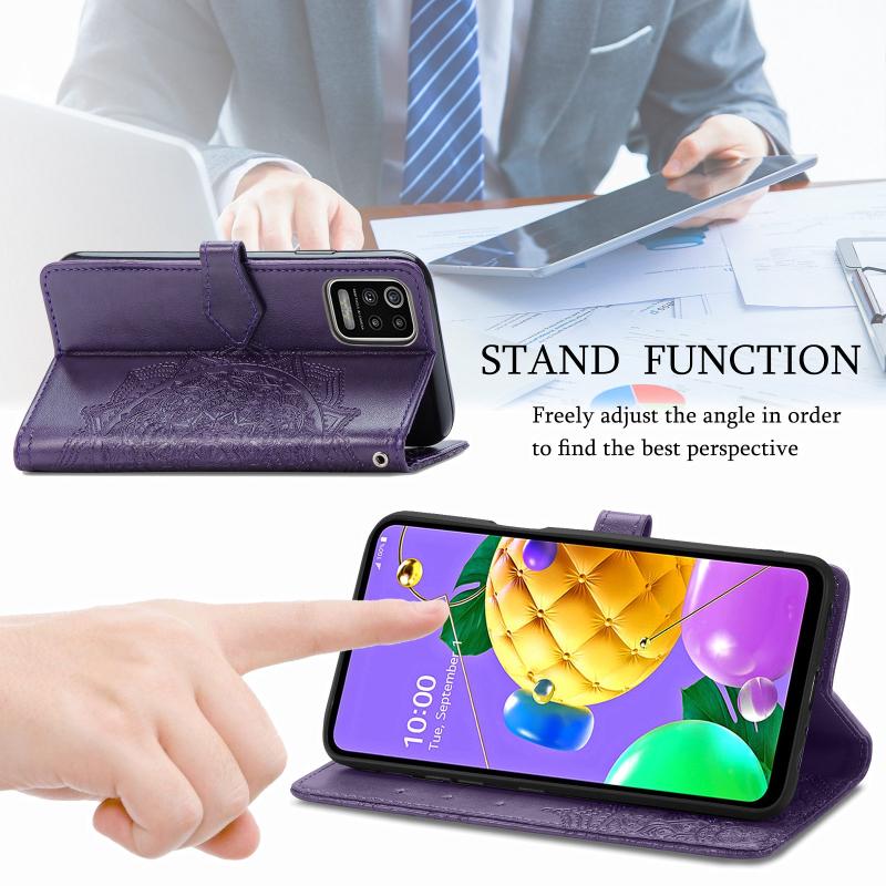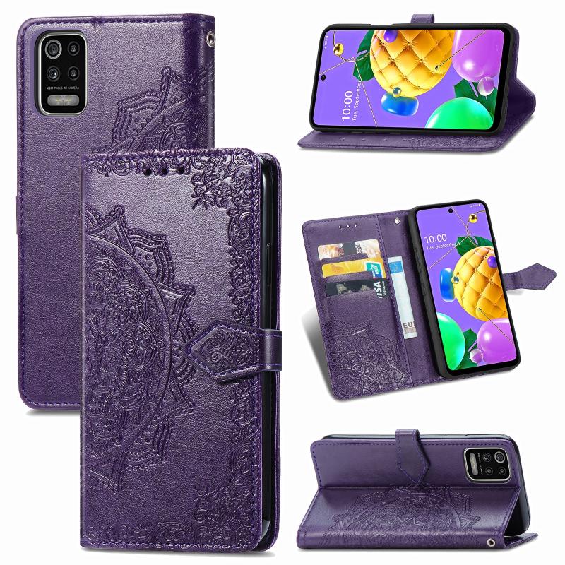 For LG K52 Mandala Flower Embossed Horizontal Flip Leather Case with Holder & Three Card Slots & Wallet & Lanyard(Purple)