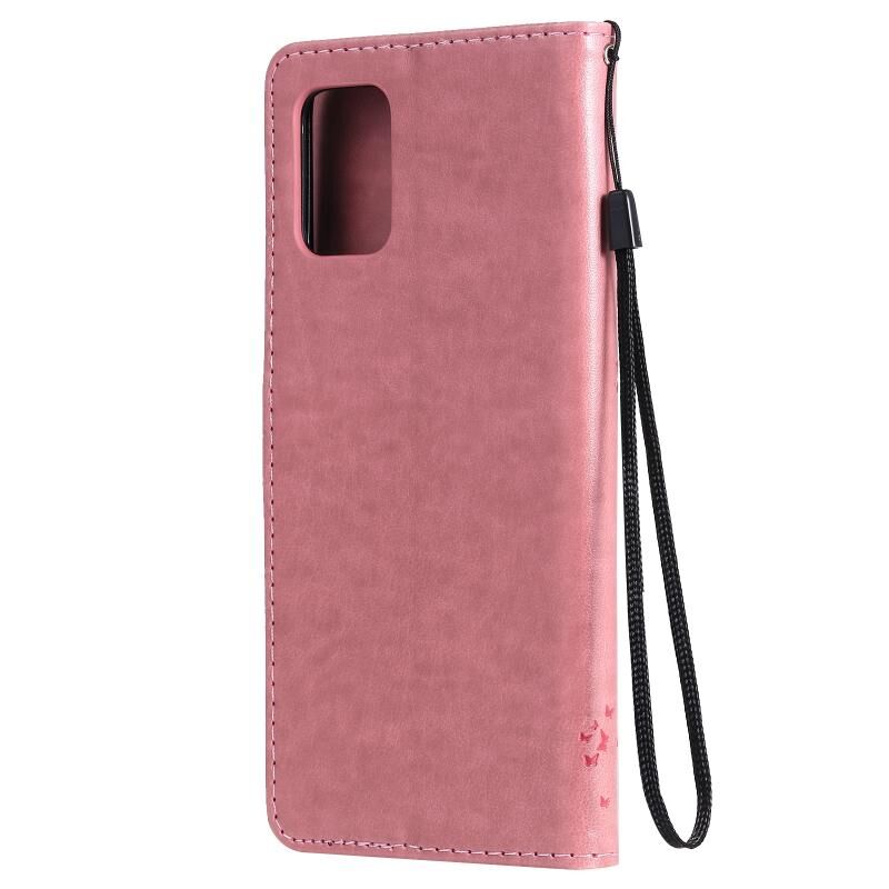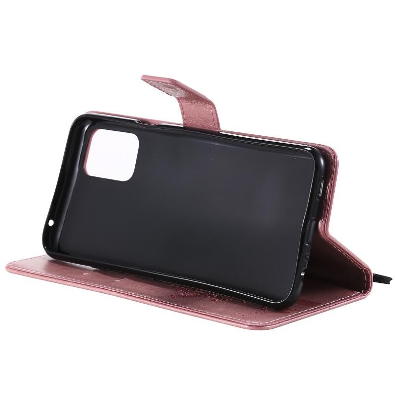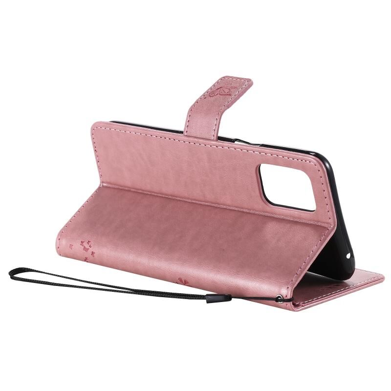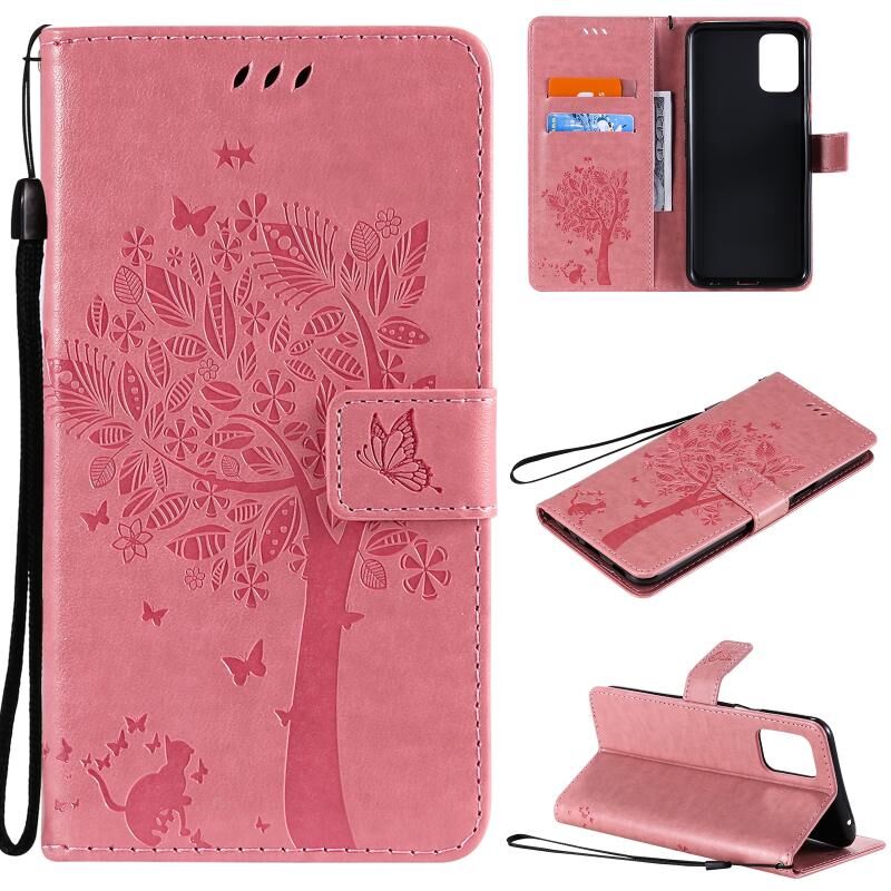 For LG K52 Tree & Cat Pattern Pressed Printing Horizontal Flip PU Leather Case with Holder & Card Slots & Wallet & Lanyard(Pink)