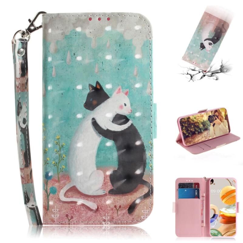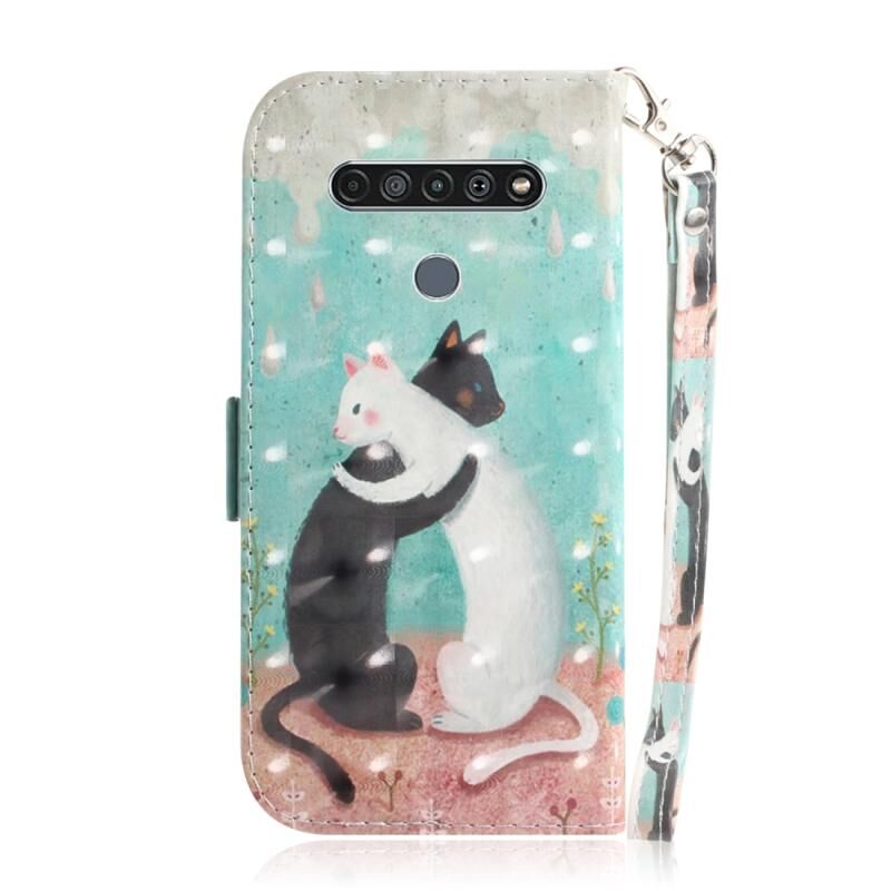 Θήκη δέρματος οριζόντιας αναδίπλωσης με σχέδιο 3D για LG K61 με βάση στήριξης, θήκες καρτών, πορτοφόλι και λουρί (Μαύρη Λευκή Γάτα)