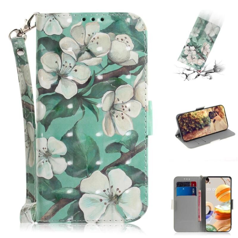 Θήκη δέρματος οριζόντιας αναδίπλωσης 3D με σχέδια και χρώματα για LG K61 με βάση στήριξης, θήκες καρτών, πορτοφόλι και λουρί (Υδάτινο Λουλούδι)