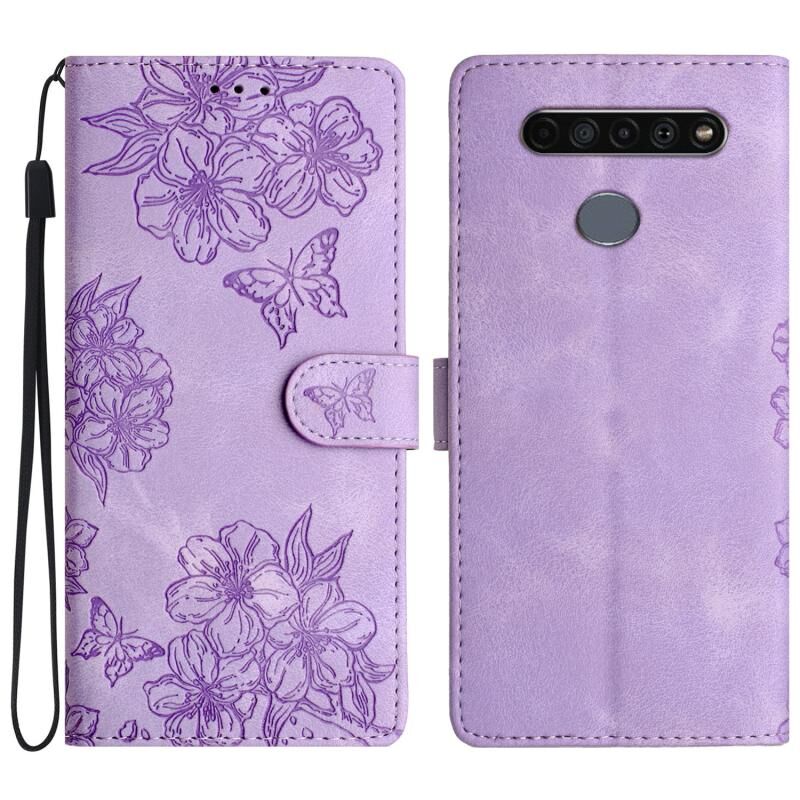Θήκη τηλεφώνου LG K61 Cherry Blossom Butterfly με ανάγλυφη υφή PU (Κόκκινο)