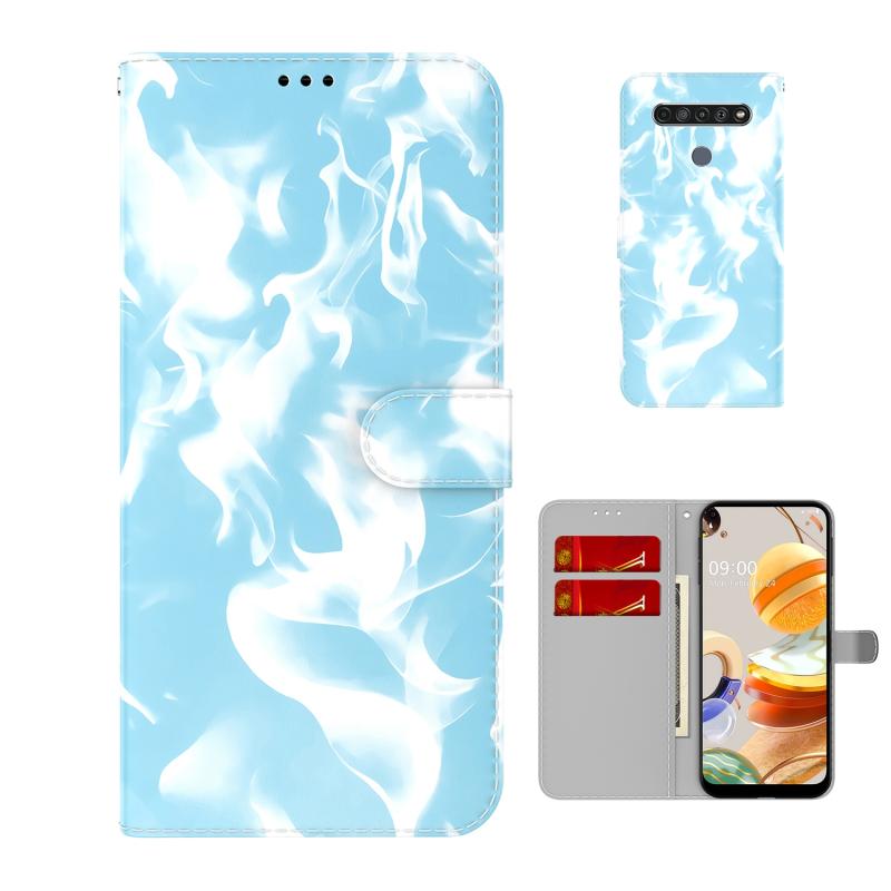 Θήκη δέρματος οριζόντιας αναδίπλωσης για LG K61 με σχέδιο Cloud Fog, με βάση στήριξης & υποδοχή κάρτας & πορτοφόλι (Γαλάζιο του ουρανού)