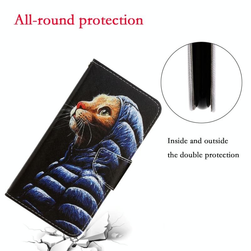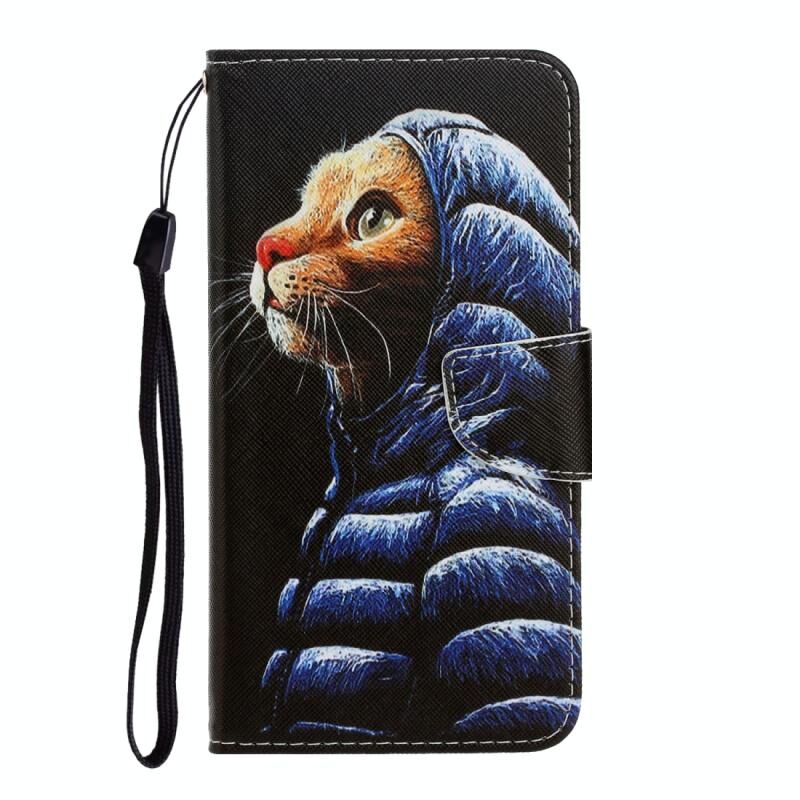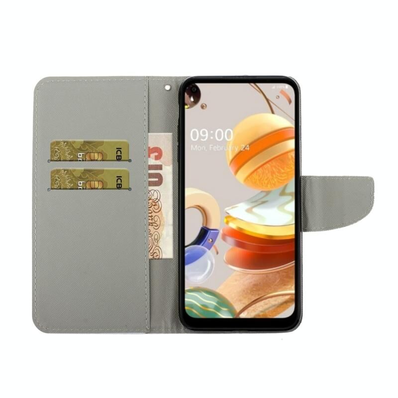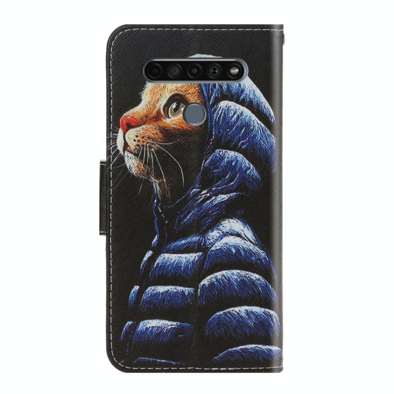 Θήκη δέρματος οριζόντιας αναδίπλωσης για LG K61 με σχέδιο πολύχρωμου σχεδίου, βάση στήριξης & θήκη για κάρτες & πορτοφόλι (Γάτα με μπουφάν)