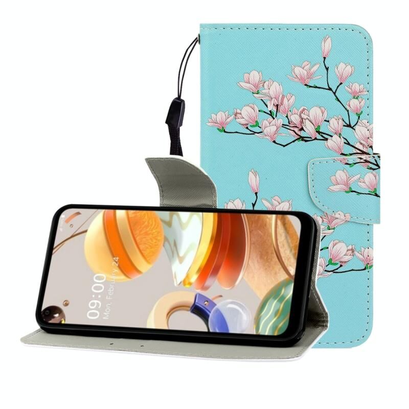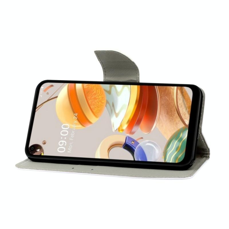 Θήκη δέρματος οριζόντιας αναδίπλωσης για LG K61 με σχέδιο, βάση στήριξης & θήκη για κάρτες & πορτοφόλι (κόκκινο)