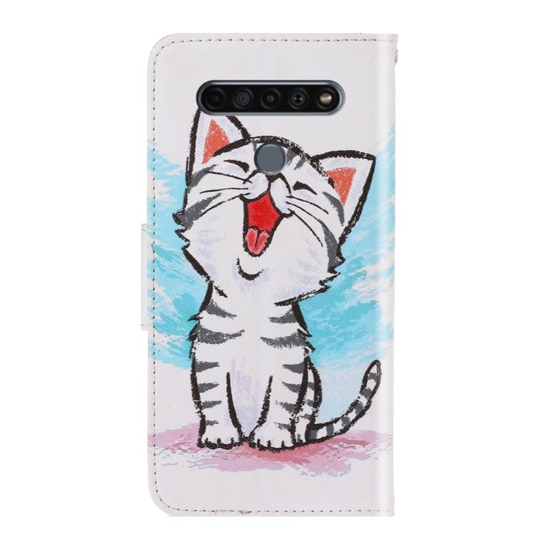 Θήκη δέρματος οριζόντιας αναδίπλωσης για LG K61 με σχέδιο πολύχρωμης ζωγραφικής, με βάση & υποδοχή κάρτας & πορτοφόλι (Κόκκινο Στόμα Γάτας)