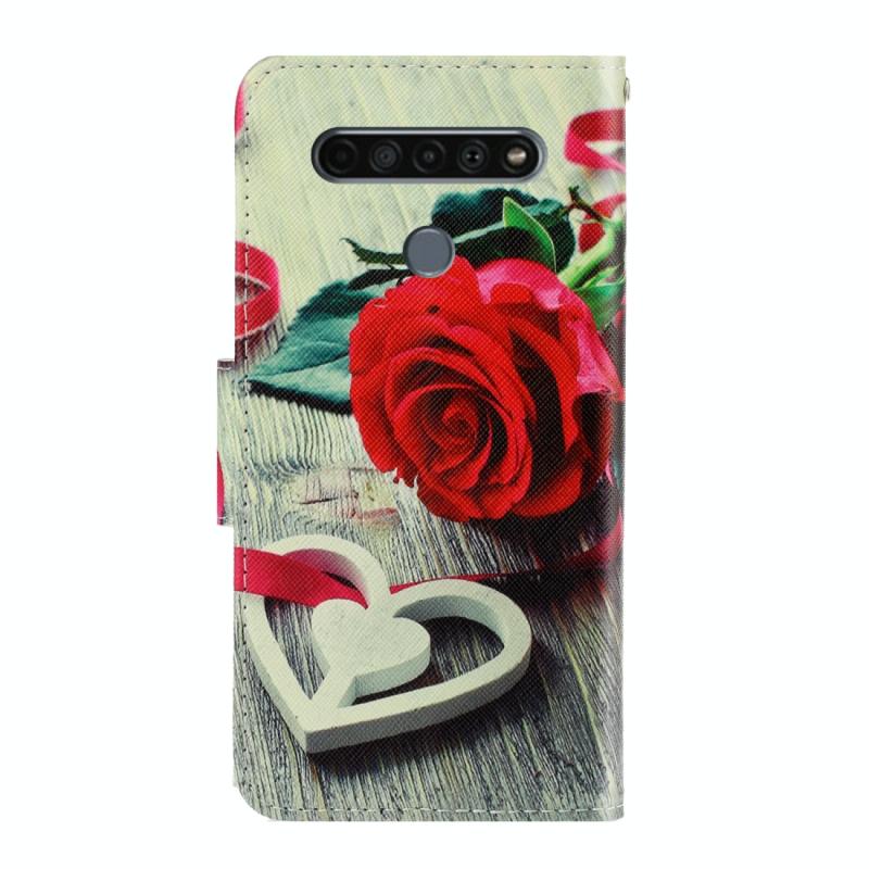 Θήκη δέρματος οριζόντιας αναδίπλωσης για LG K61 με σχέδιο, βάση στήριξης & θήκη για κάρτες & πορτοφόλι (Κόκκινο Τριαντάφυλλο)