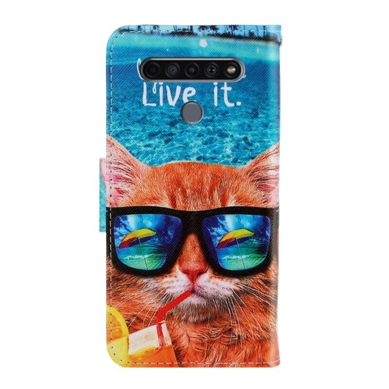 Θήκη δέρματος οριζόντιας αναδίπλωσης για LG K61 με σχέδιο πολύχρωμης ζωγραφικής, με βάση στήριξης & υποδοχή κάρτας & πορτοφόλι (Γάτα κάτω από το νερό)