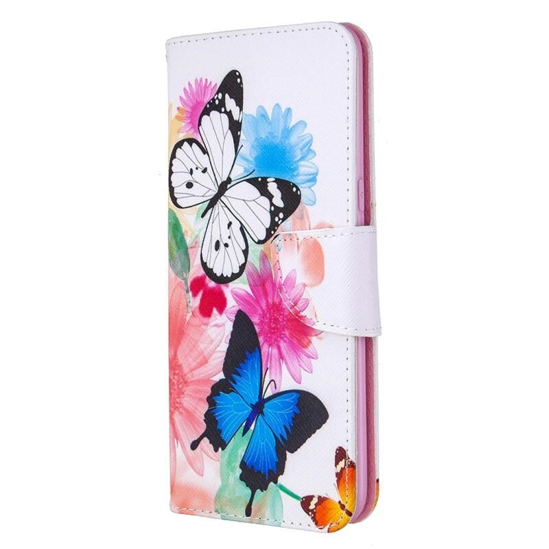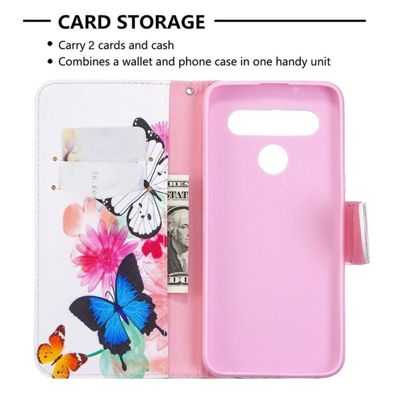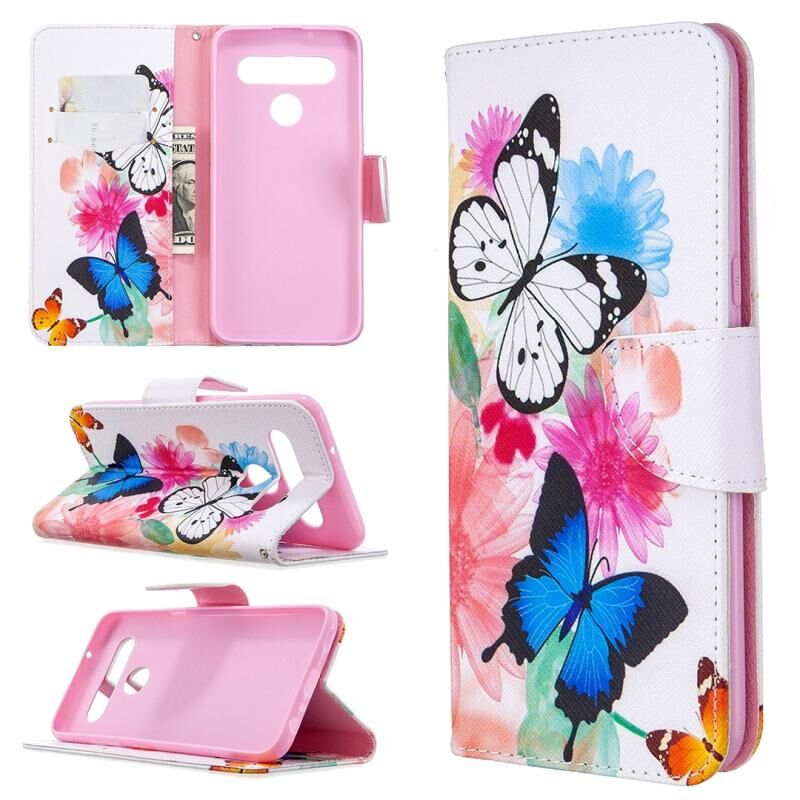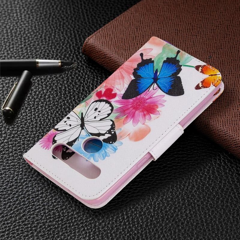 Θήκη δέρματος οριζόντιας αναδίπλωσης με σχέδιο πολύχρωμης ζωγραφικής για LG K61 με βάση & υποδοχές καρτών & πορτοφόλι (Πεταλούδα)