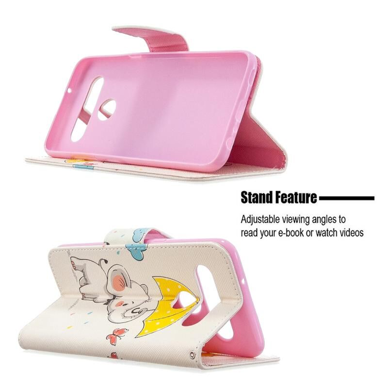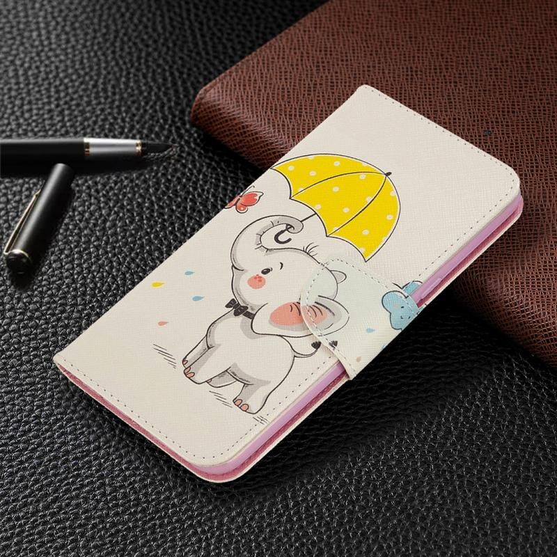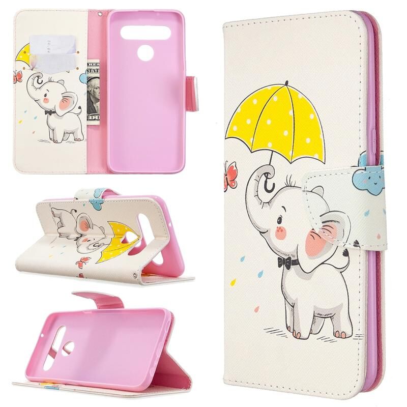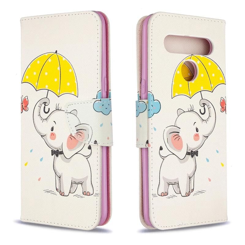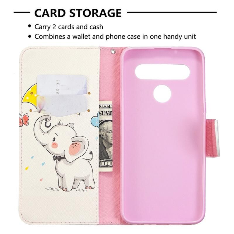 Θήκη δέρματος οριζόντιας αναδίπλωσης με σχέδιο πολύχρωμης ζωγραφικής για LG K61 με βάση & υποδοχές καρτών & πορτοφόλι (Ελέφαντας)