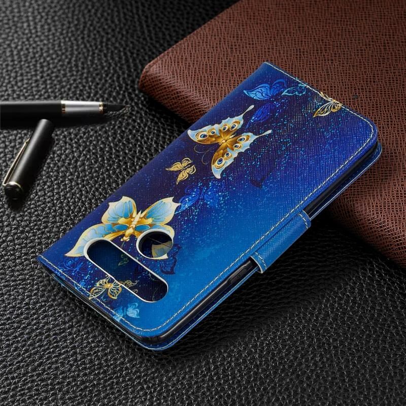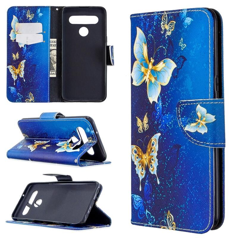Θήκη δέρματος οριζόντιας αναδίπλωσης με σχέδιο πολύχρωμης ζωγραφικής για LG K61 με βάση & υποδοχές καρτών & πορτοφόλι (Μωβ Πεταλούδα)