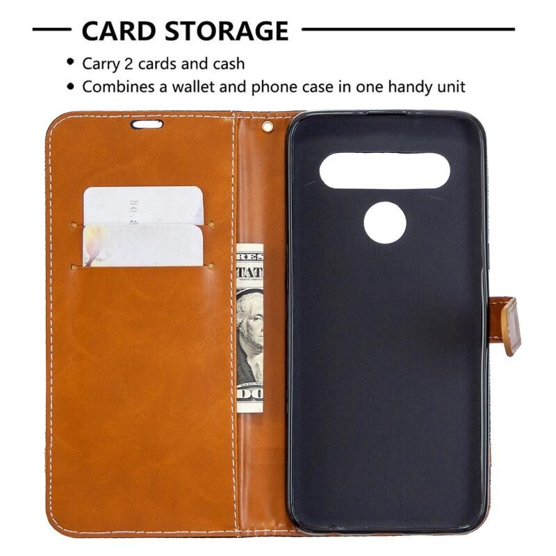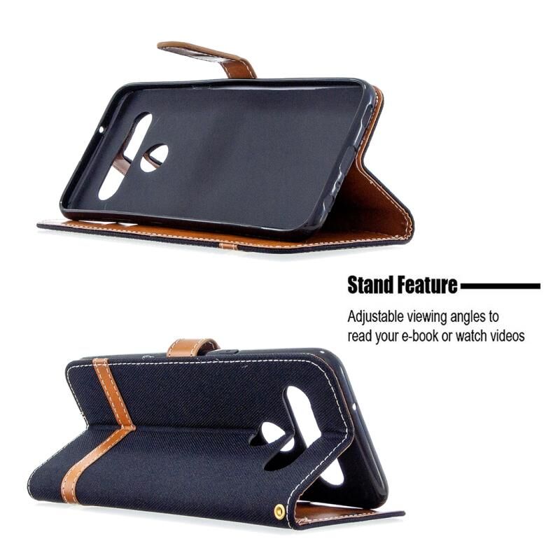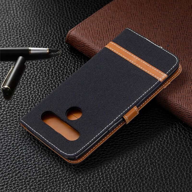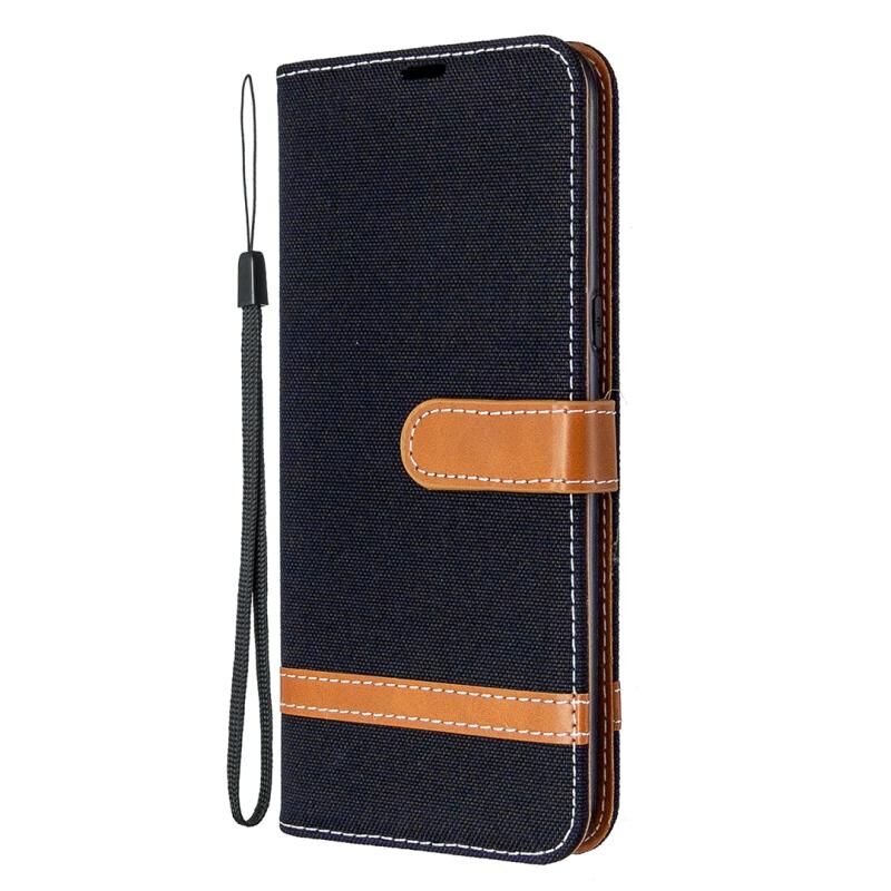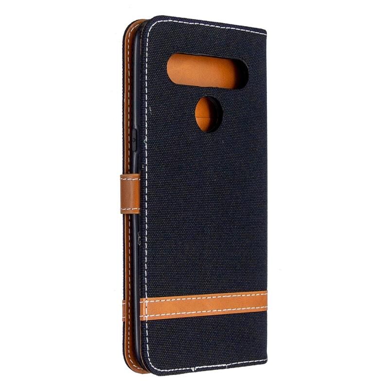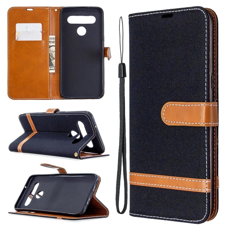 Για LG K61 Denim Texture Οριζόντια Flip δερμάτινη θήκη με θήκη & υποδοχές για κάρτες & πορτοφόλι & κορδόνι (Μαύρο)