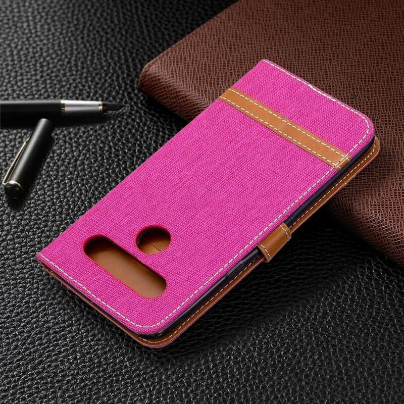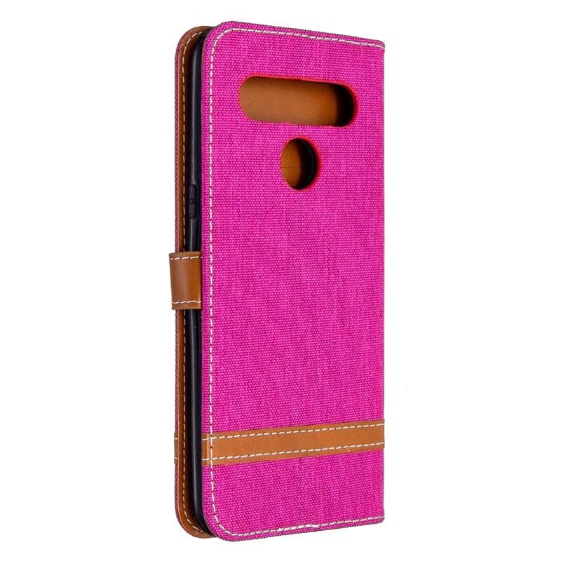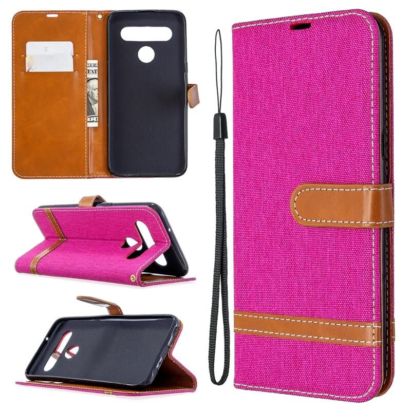 Για LG K61 Denim Texture Οριζόντια Flip δερμάτινη θήκη με θήκη & υποδοχές για κάρτες & πορτοφόλι & κορδόνι (Rose Red)