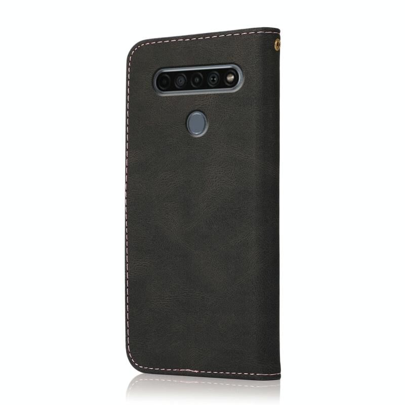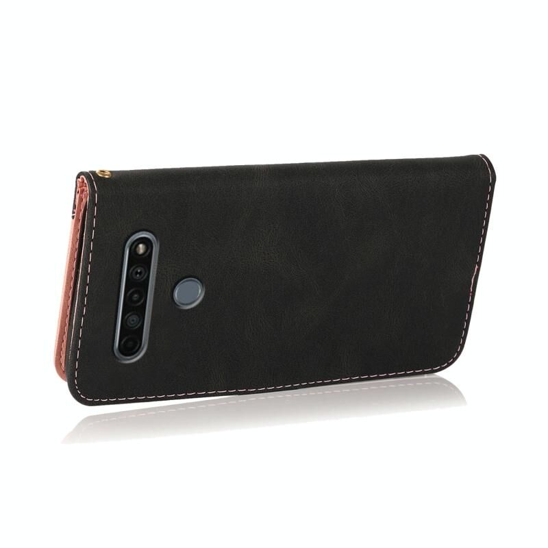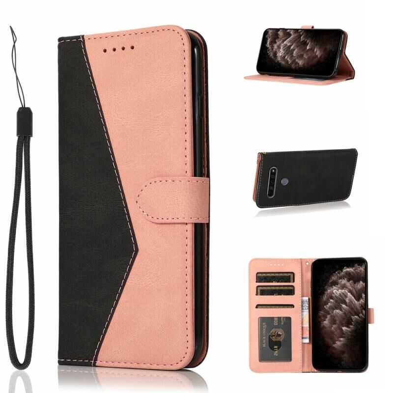Θήκη τηλεφώνου από δέρμα με διπλή ραφή για LG K61 (Μαύρο Ροζ Χρυσό)