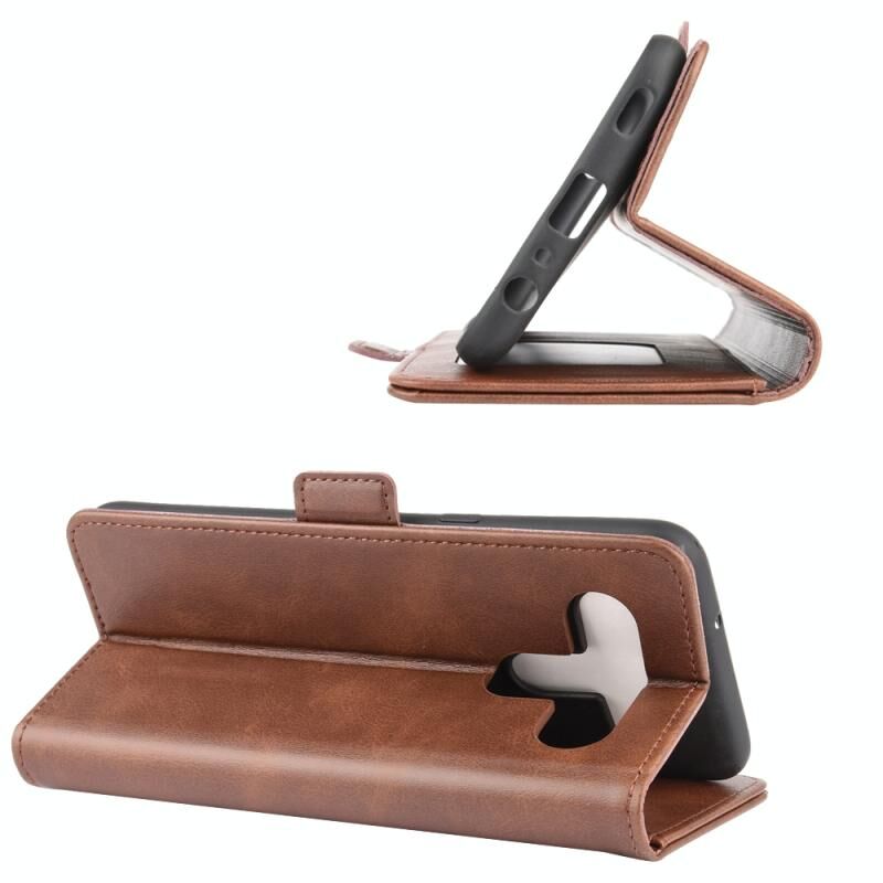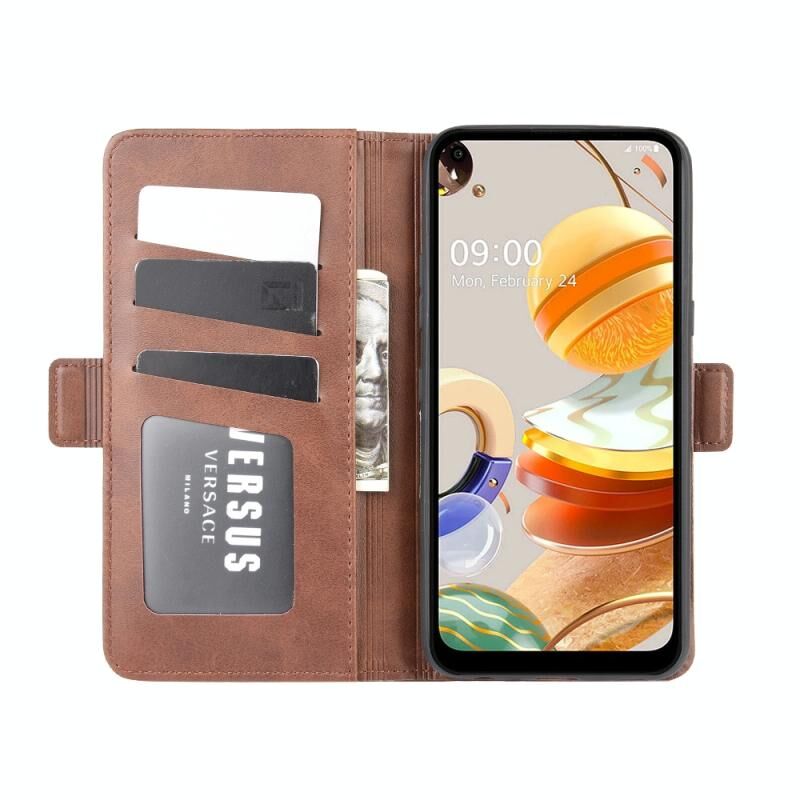 Για LG K61 Διπλής όψης μαγνητική πόρπη οριζόντια Flip δερμάτινη θήκη με υποδοχές για κάρτες και πορτοφόλι (καφέ)