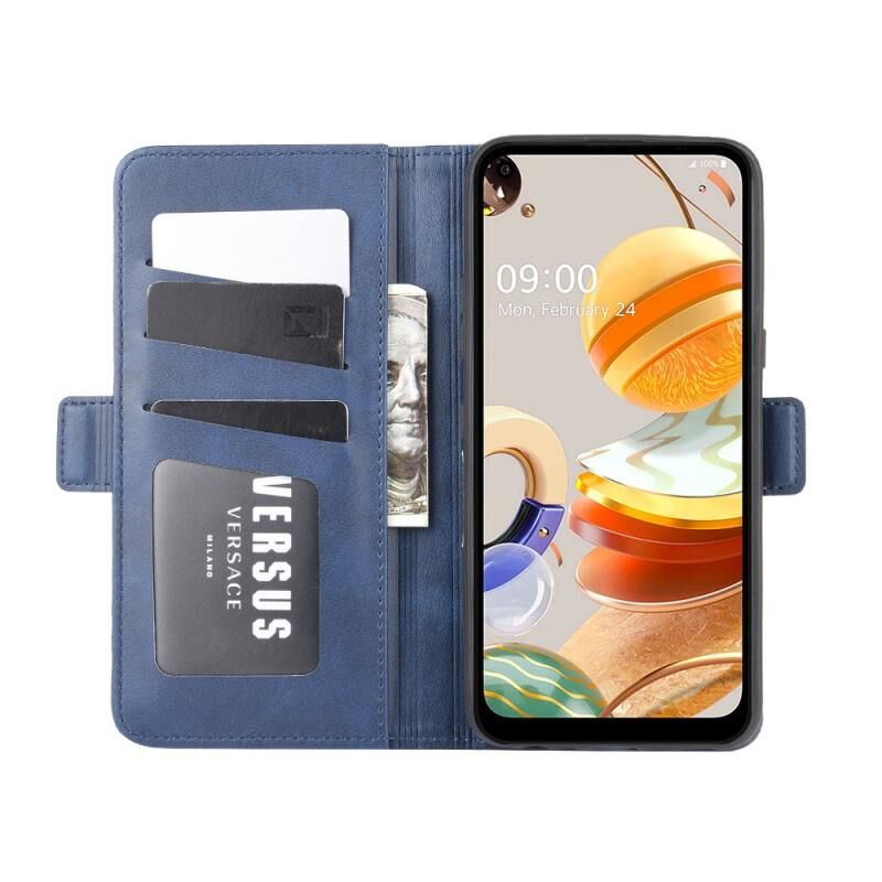 Για LG K61 Διπλής όψης μαγνητική πόρπη οριζόντια Flip δερμάτινη θήκη με θήκη & υποδοχές για κάρτες & πορτοφόλι (σκούρο μπλε)
