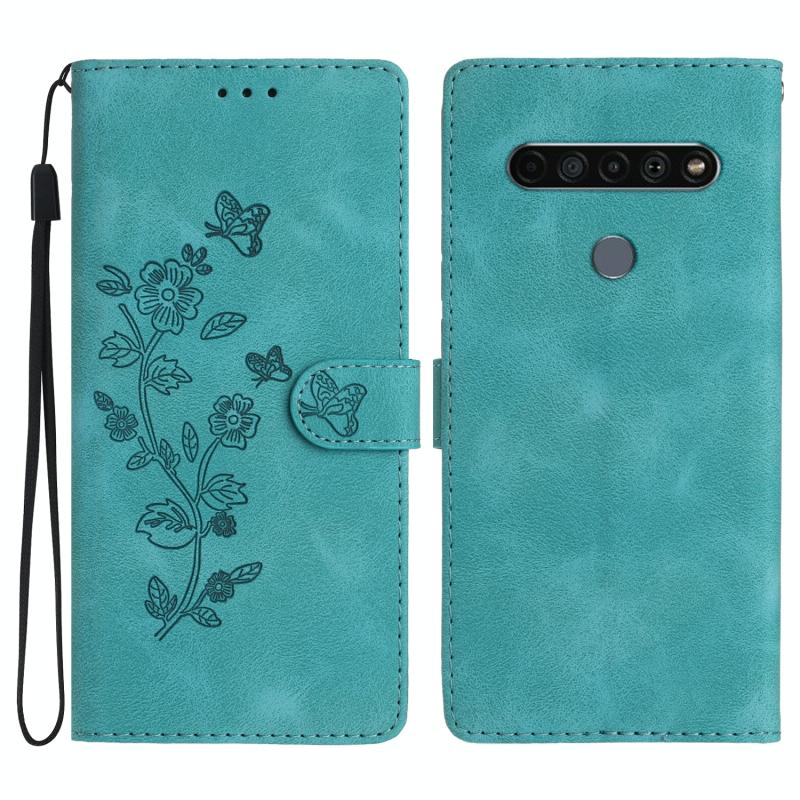 Θήκη τηλεφώνου δερμάτινη με ανάγλυφο σχέδιο λουλουδιών και πεταλούδων για LG K61 (Μαύρο)