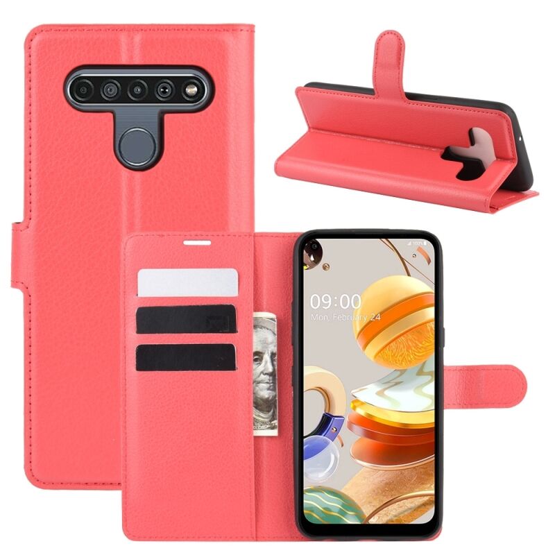 Για LG K61 Litchi Υφή Οριζόντια Flip Προστατευτική θήκη με υποδοχές για κάρτες & υποδοχές & πορτοφόλι (κόκκινο)