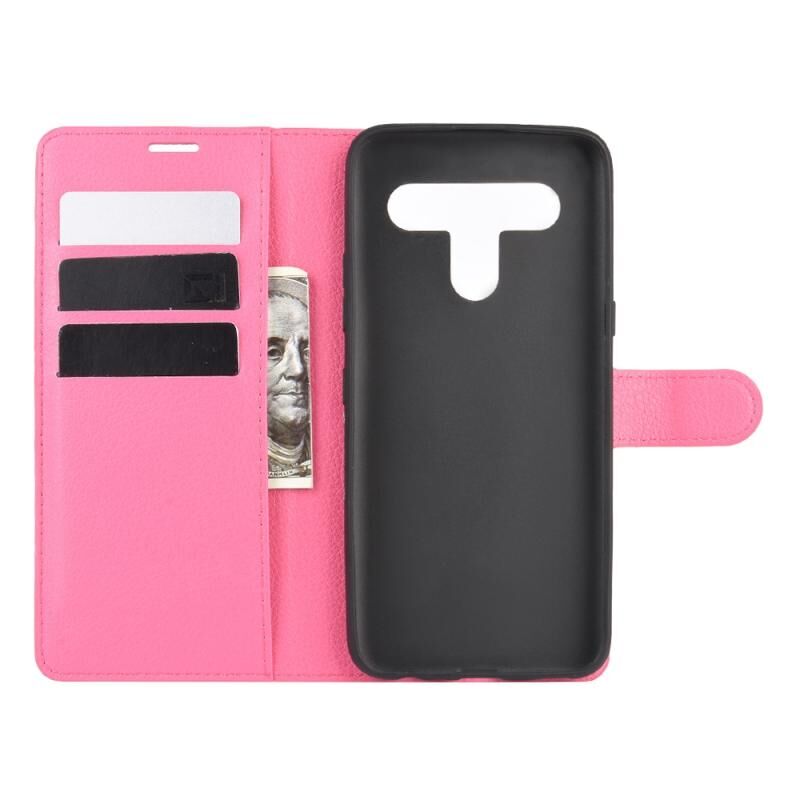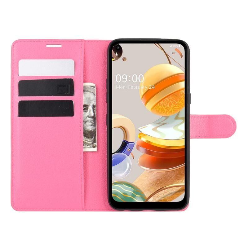 Για LG K61 Litchi Υφή Οριζόντια Flip Προστατευτική θήκη με υποδοχές για κάρτες & υποδοχές & πορτοφόλι (Rose red)