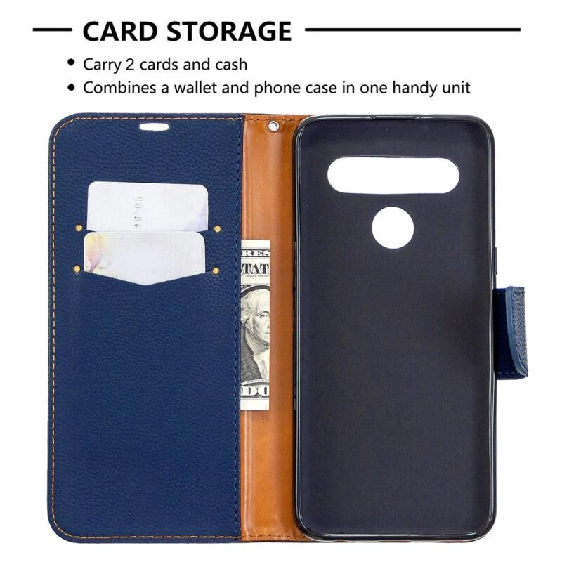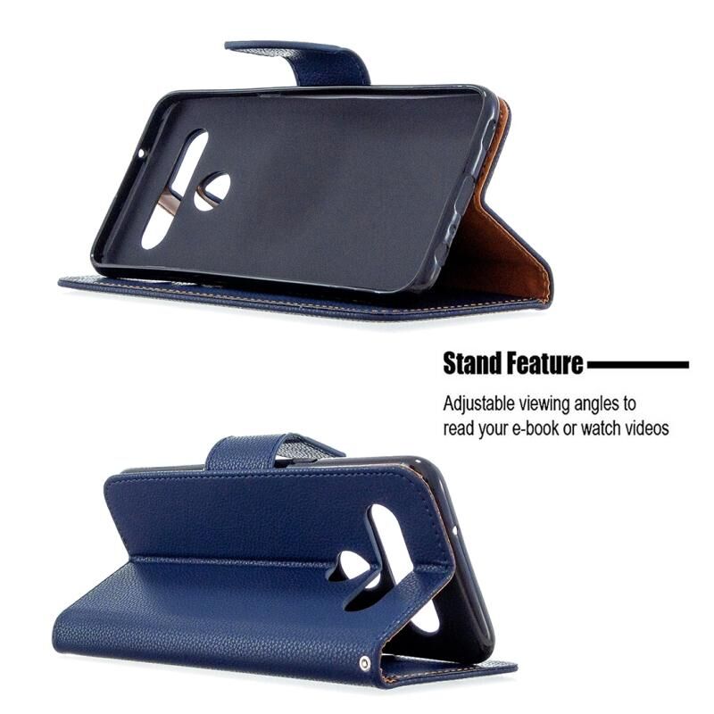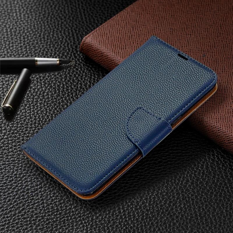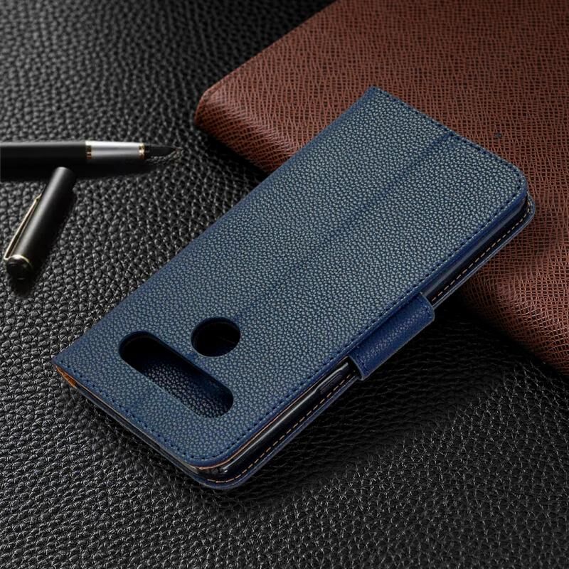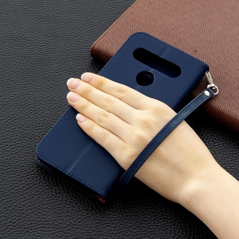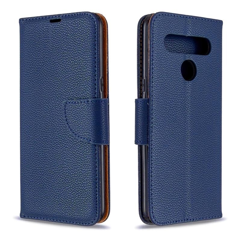 Για LG K61 Litchi Υφή καθαρό χρώμα οριζόντια Flip δερμάτινη θήκη με υποδοχές για κάρτες & υποδοχές & πορτοφόλι & κορδόνι (σκούρο μπλε)
