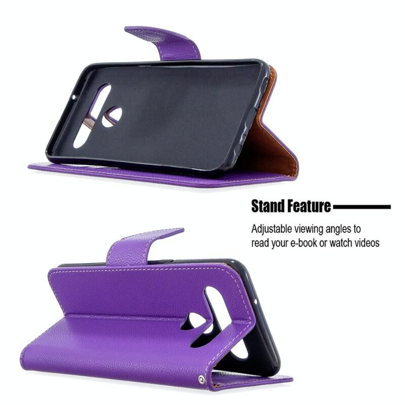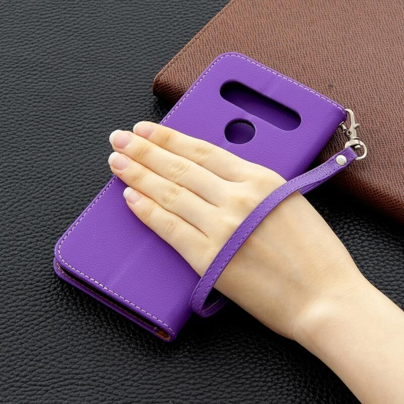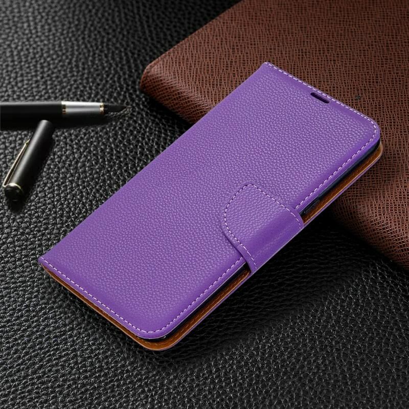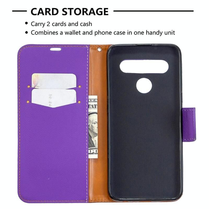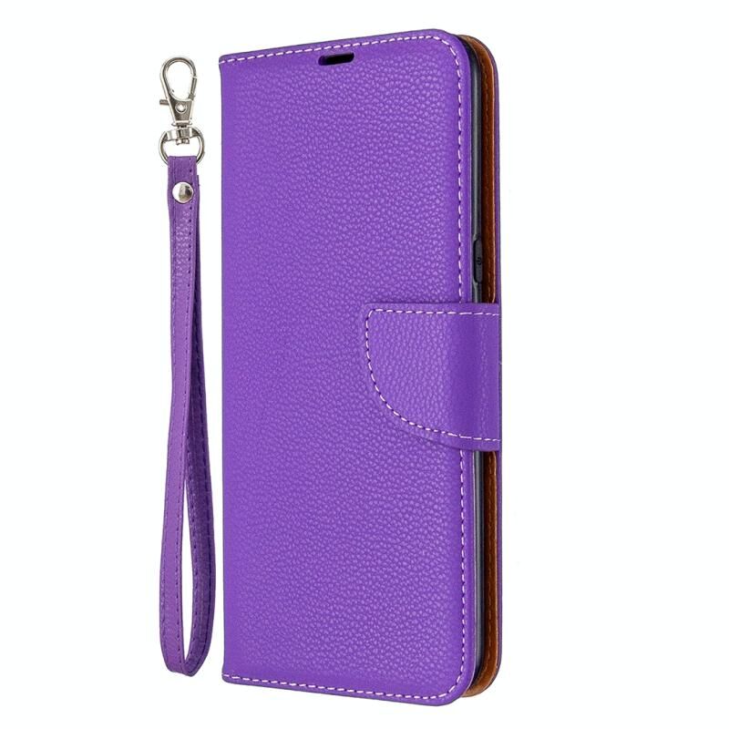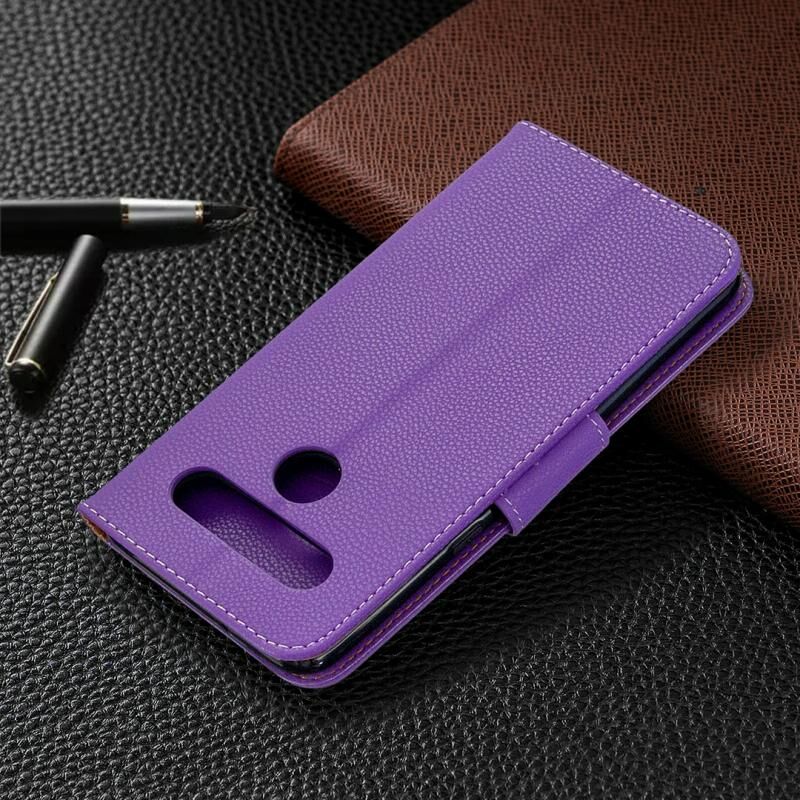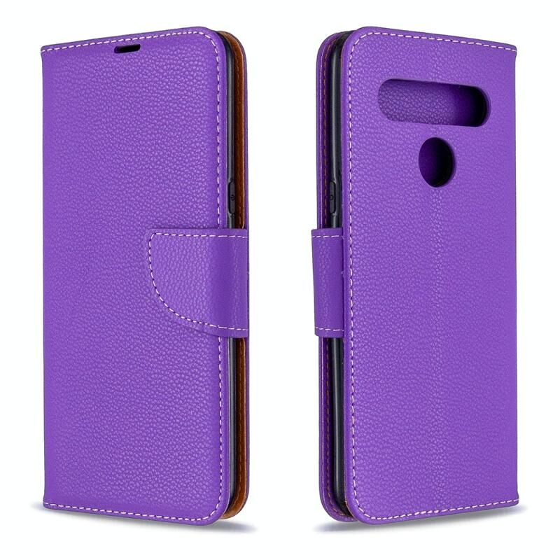 Για LG K61 Litchi υφή καθαρό χρώμα οριζόντια Flip δερμάτινη θήκη με υποδοχές για κάρτες & υποδοχές & πορτοφόλι & κορδόνι (μωβ)