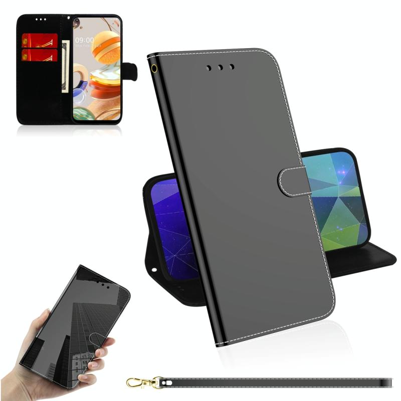 For LG K61 Lmitated Mirror Surface Horizontal Flip Leather Case with Holder & Card Slots & Wallet & Lanyard(Black)