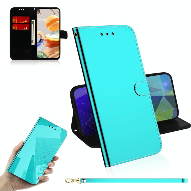 For LG K61 Lmitated Mirror Surface Horizontal Flip Leather Case with Holder & Card Slots & Wallet & Lanyard(Mint Green)